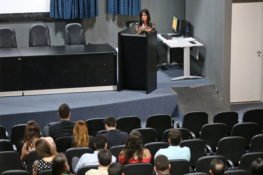 Professora Cláudia Maria Cruz Santos, doutora em Direito pela Universidade de Coimbra, abriu o seminário. Foto: Caio Loureiro