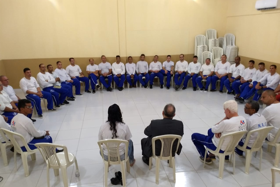 Juiz Cláudio Lopes e psicóloga Luciana Rocha discutiram visão sistêmica e comunicação não violenta com reeducandos