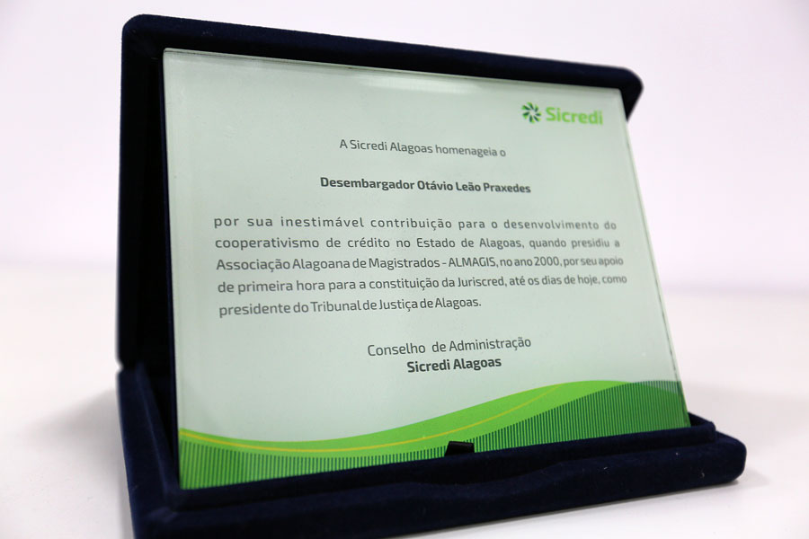 Presidente do Tribunal de Justiça de Alagoas recebeu, nesta quarta-feira, em Maceió, homenagem da direção do Sistema de Crédito (Sicredi Alagoas), que congrega Juriscred e a Unicred