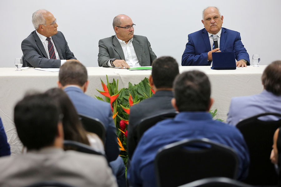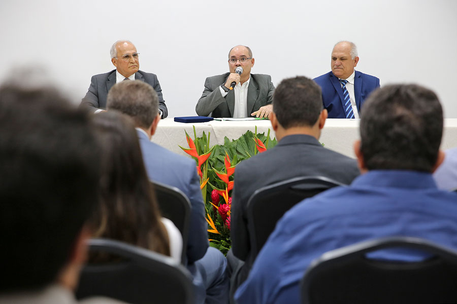 Diretor Maurílio Ferraz, presidente do Sicredi Edvaldo Maia e presidente do TJAL Otávio Praxedes