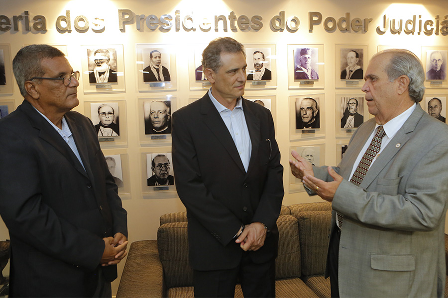 O desembargador Celyrio Adamastor Tenório Accioly, vice-presidente do Tribunal de Justiça de Alagoas, recebeu a vista de Paulo Castilho, promotor de Justiça de São Paulo. Ele é um dos palestrantes do Seminário em Busca da Paz dos Estádios, que começa amanhã (30), no Centro de Convenções Ruth Cardoso.