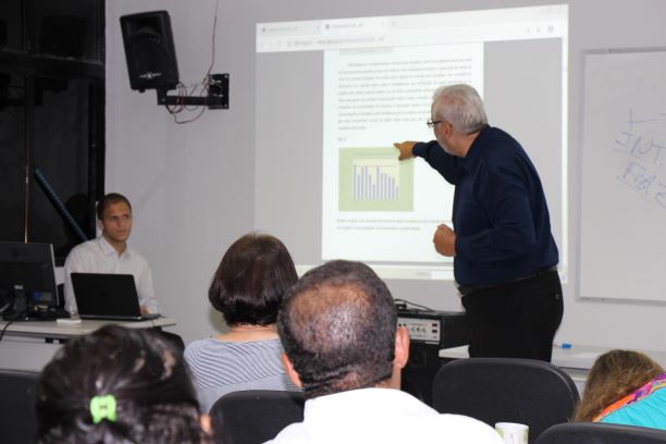 Alexandre Moraes explicou para a equipe como funcionam os indicadores do programa. Foto: Carolina Amâncio
