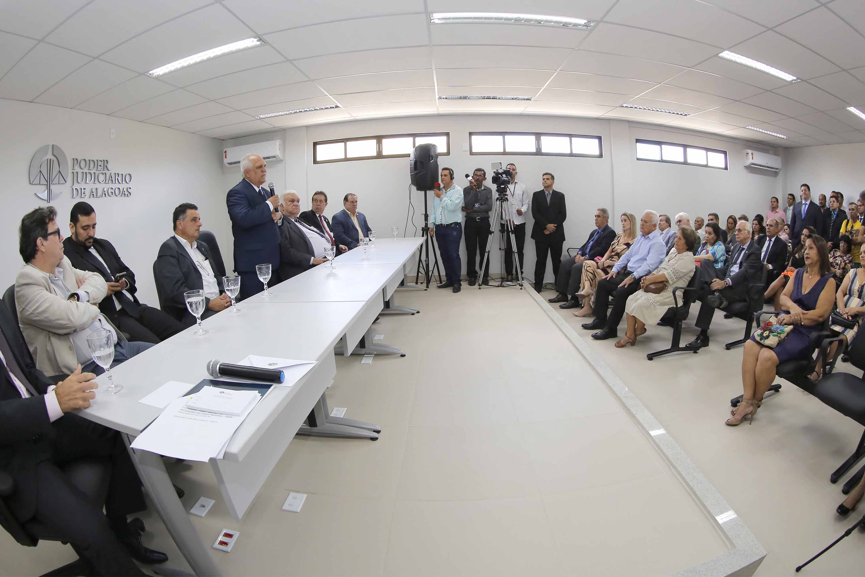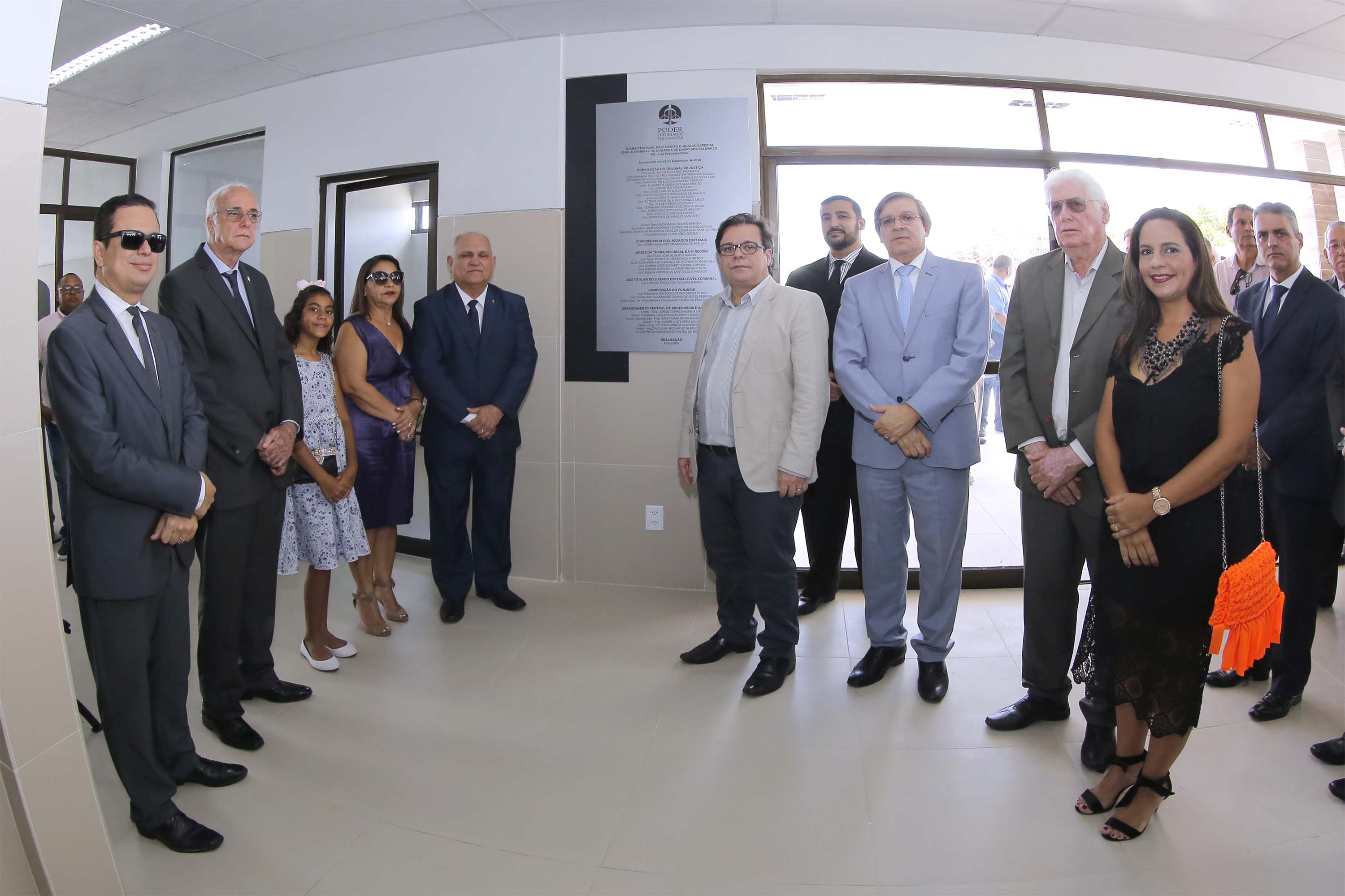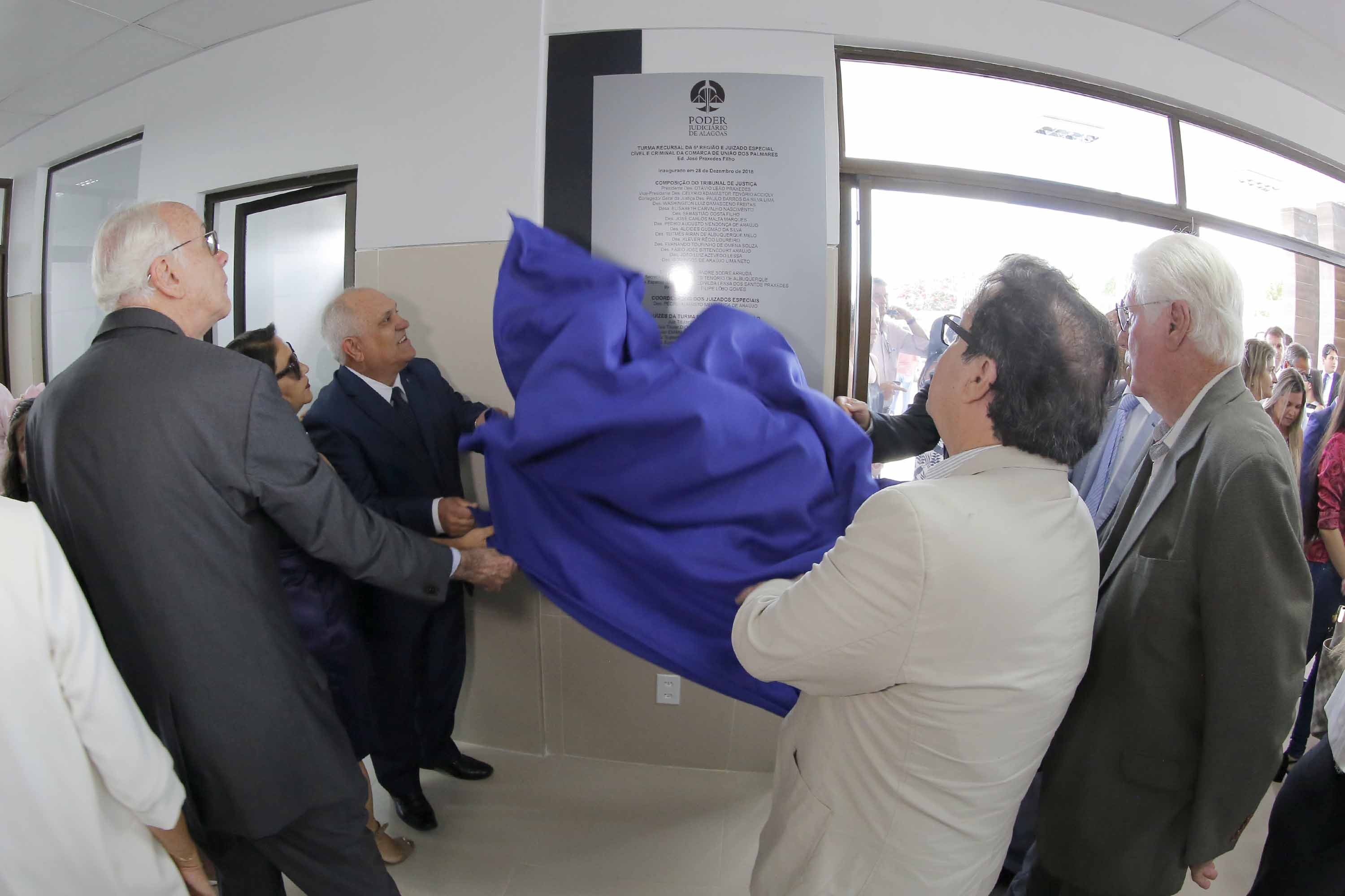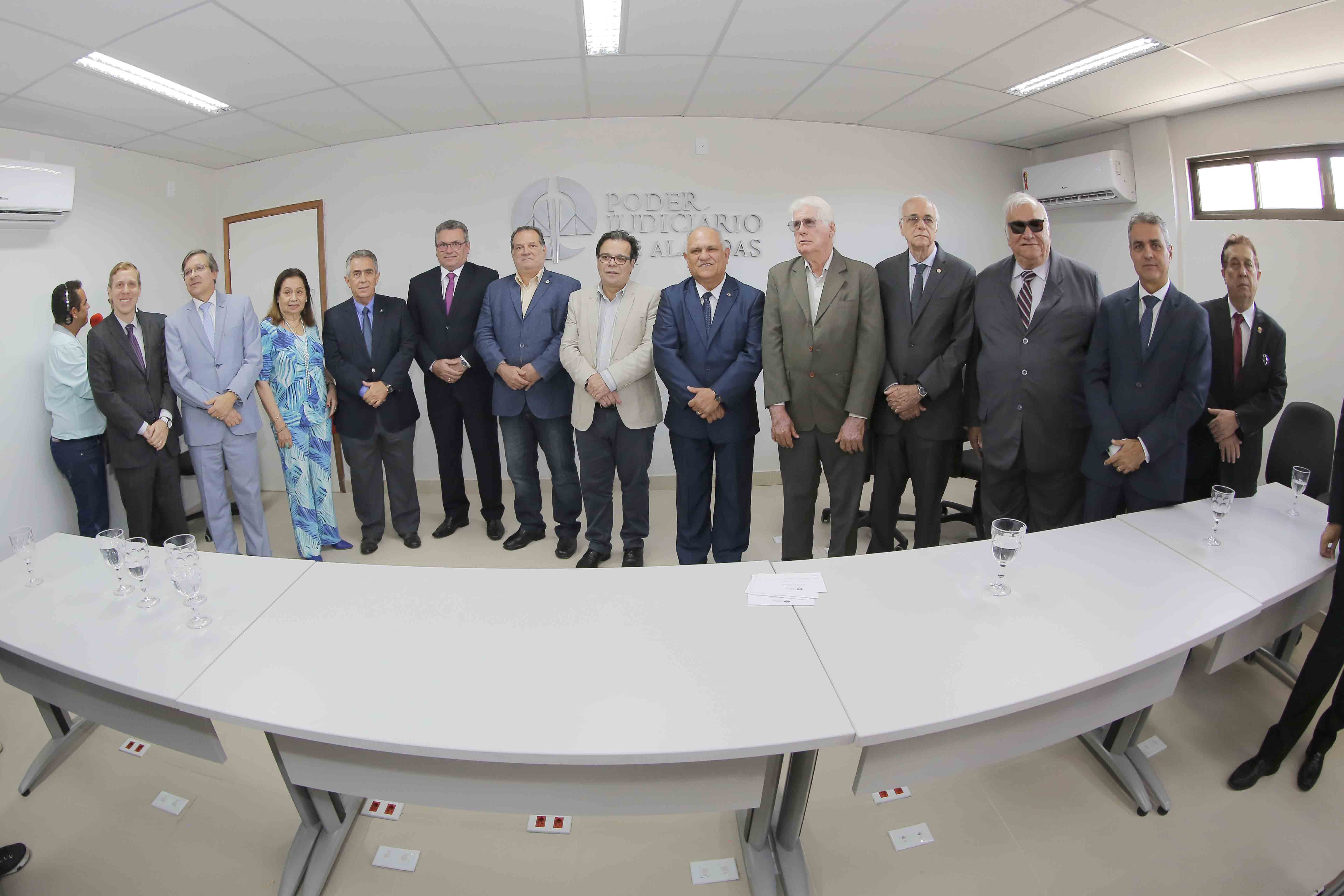 Os desembargadores Tutmés Airan de Albuquerque, José Carlos Malta, Pedro Augusto Araújo, João Luiz Lessa, Domingos Neto, José Holanda Ferreira (aposentado), magistrados, servidores, parentes e amigos do homenageado participaram da solenidade de inauguração do novo prédio do Judiciário alagoano.