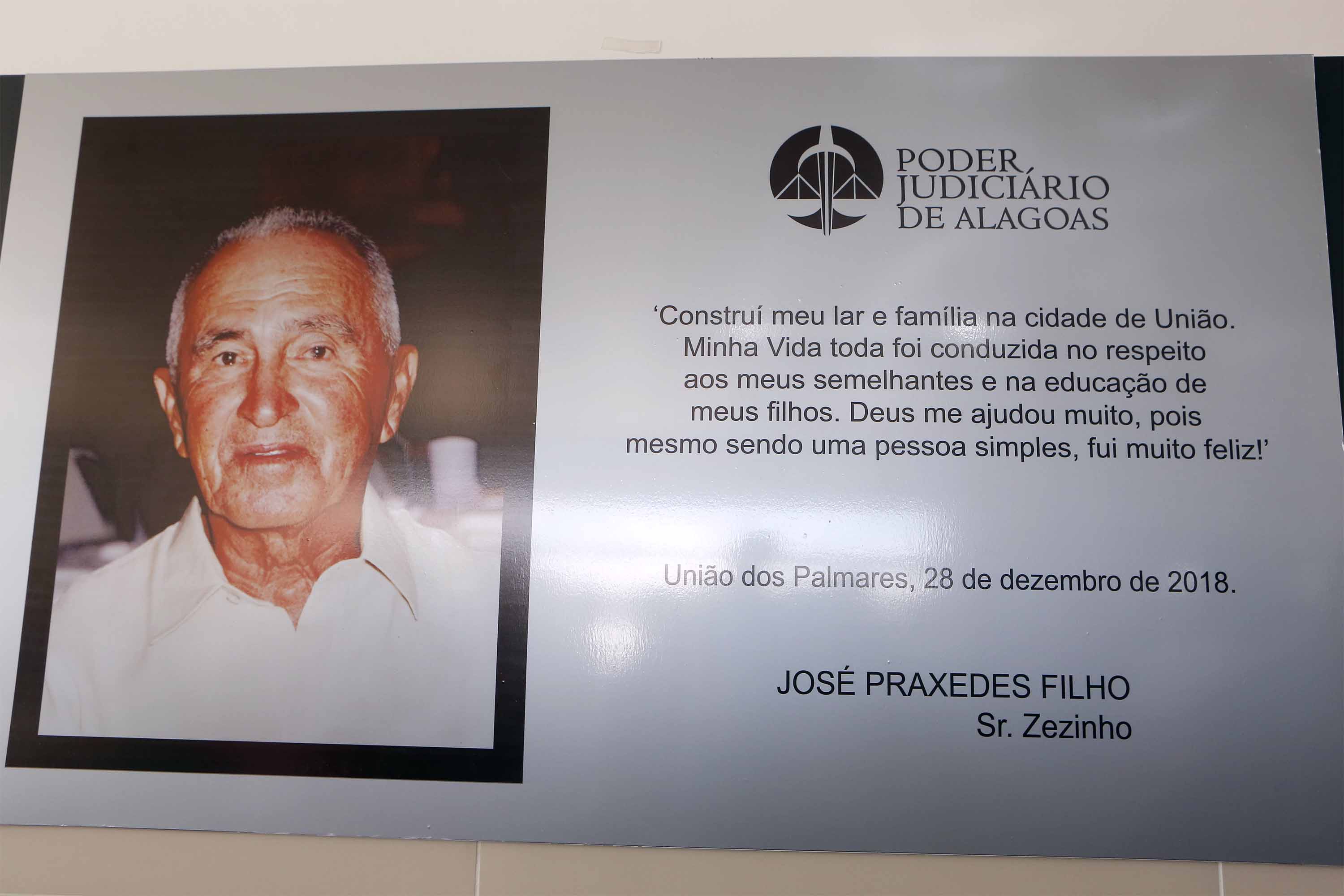 Aprovado pelo Pleno do TJAL, o prédio recebeu o nome de José Praxedes Filho, genitor do presidente Otávio Praxedes, que durante anos se dedicou ao serviço público do município. “É motivo de muito orgulho poder homenagear meu querido pai, que foi uma pessoa muito simples e trabalhadora. Ele, com a minha mãe, ensinou os 11 filhos a respeitarem seus semelhantes, entendeu a importância da educação e exigiu a frequência de todos na escola”, lembrou o presidente do TJAL.