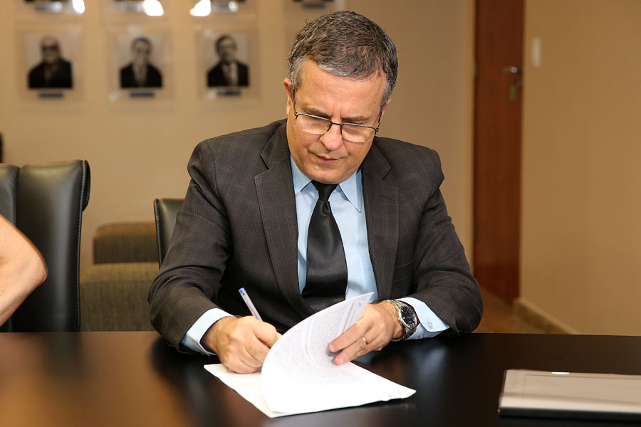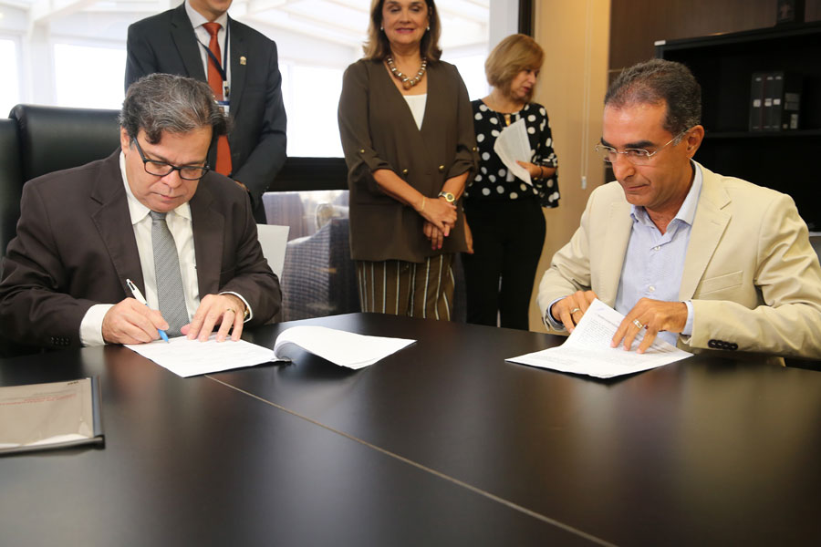 Presidente Tutmés Airan e prefeito Pedro Jatobá assinaram o convênio nesta quinta-feira (17). Foto: Caio Loureiro