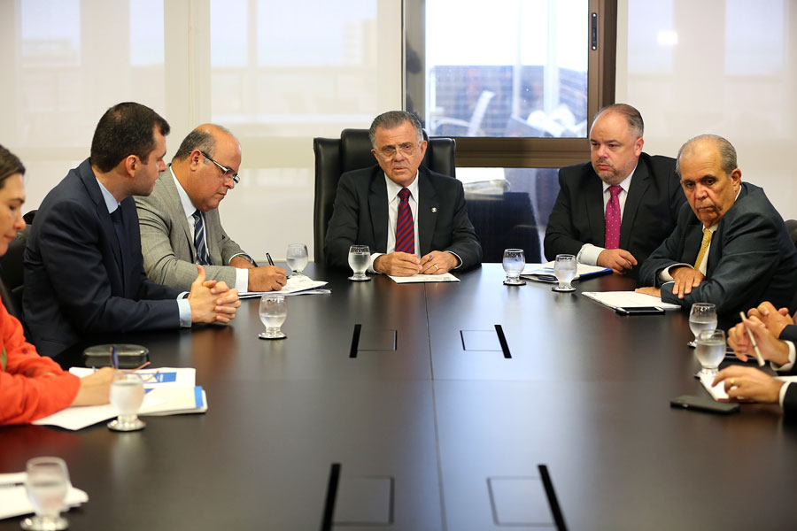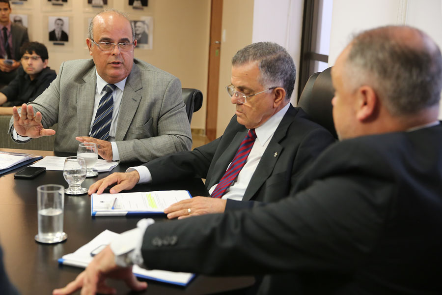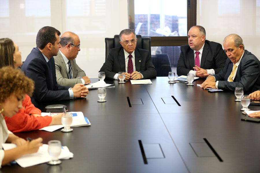 Fernando Tourinho, Sebastião Costa, Luiz Geraldo Lanfredi e Celyrio Adamastor, em reunião na Presidência do TJ. Foto: Caio Loureiro.