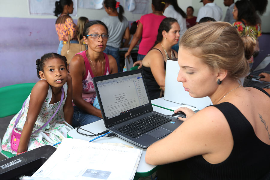 População aproveitou a oportunidade pra resolver processos e emitir documentos, na Escola Municipal Antônio Barbosa Leite. Foto: Caio Loureiro.