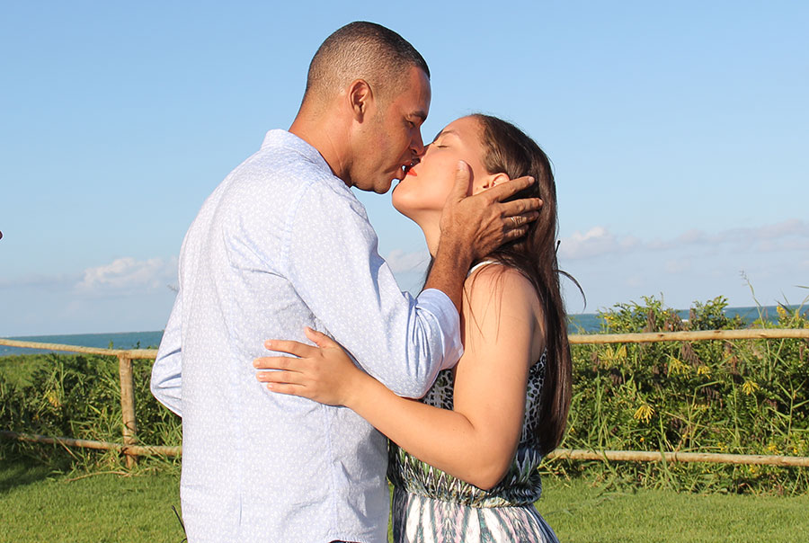 Jaqueline Angelita e Jackson dos Santos oficializaram a união na praia, assim como se conheceram. Foto: Adeildo Lobo