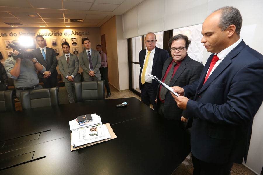 O presidente do Tribunal de Justiça de Alagoas, Tutmés Airan de Albuquerque, titularizou os 23 magistrados que entraram no Judiciário por meio do concurso concluído em 2016. A solenidade ocorreu no gabinete da Presidência, nesta segunda-feira (15).