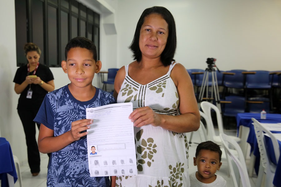 A doméstica Ridna Maria aproveitou o mutirão da Justiça Itinerante, neste sábado (18), em Cruz das Almas, para tirar a identidade e o CPF do filho, de dez anos. Já o casal Cristóvão e Vanessa chegou cedo para garantir vaga no casamento coletivo que será realizado no final da tarde.