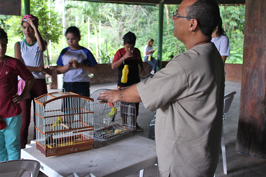 Durante a visita, funcionários do Ibama apresentaram aos alunos espécies e frutos da mata atlântica, e deram explicações sobre tráfico de animais.