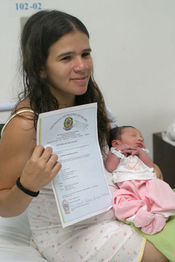 A recém-nascida Sandrielly Delmiro da Silva foi a primeira criança alagoana a ser beneficiada com o programa Registro de Nascimento na Maternidade. A entrega da certidão de nascimento foi realizada na manhã desta quarta-feira (20), pela presidente do Tribunal de Justiça de Alagoas (TJ/AL), desembargadora Elisabeth Carvalho Nascimento, durante a assinatura do convênio entre o Fundo Especial Para o Registro Civil (FERC) e a Maternidade São Rafael.