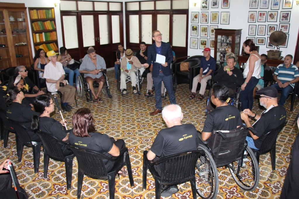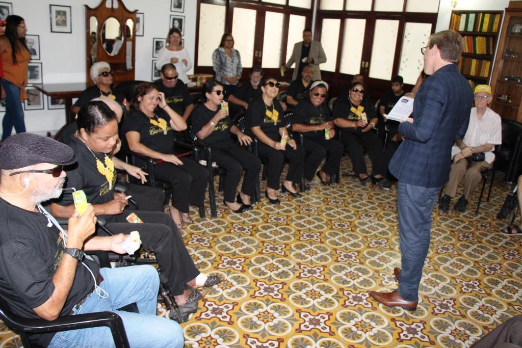 Durante a visita, os idosos do abrigo tiveram a oportunidade de assistir a uma apresentação conduzida pelo maestro Luciano Peixoto, do coral Carlos Gomes, da Escola Estadual Ciro Acioly, do qual Mestre Cícero faz parte. Também assistiram a um filme mudo, que foi descrito oralmente, no auditório.