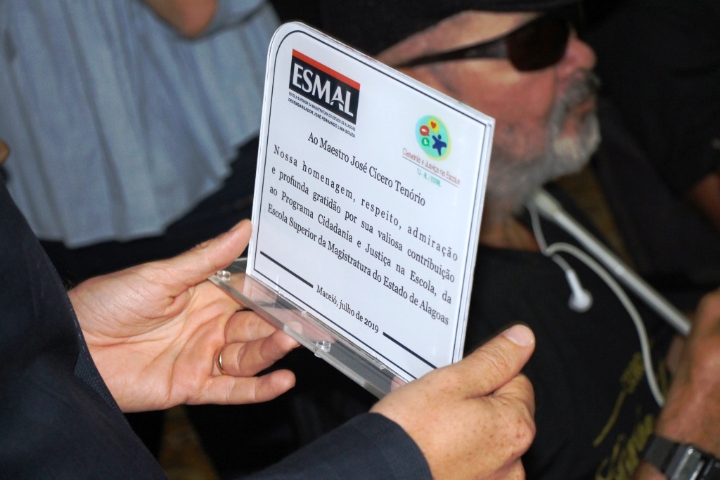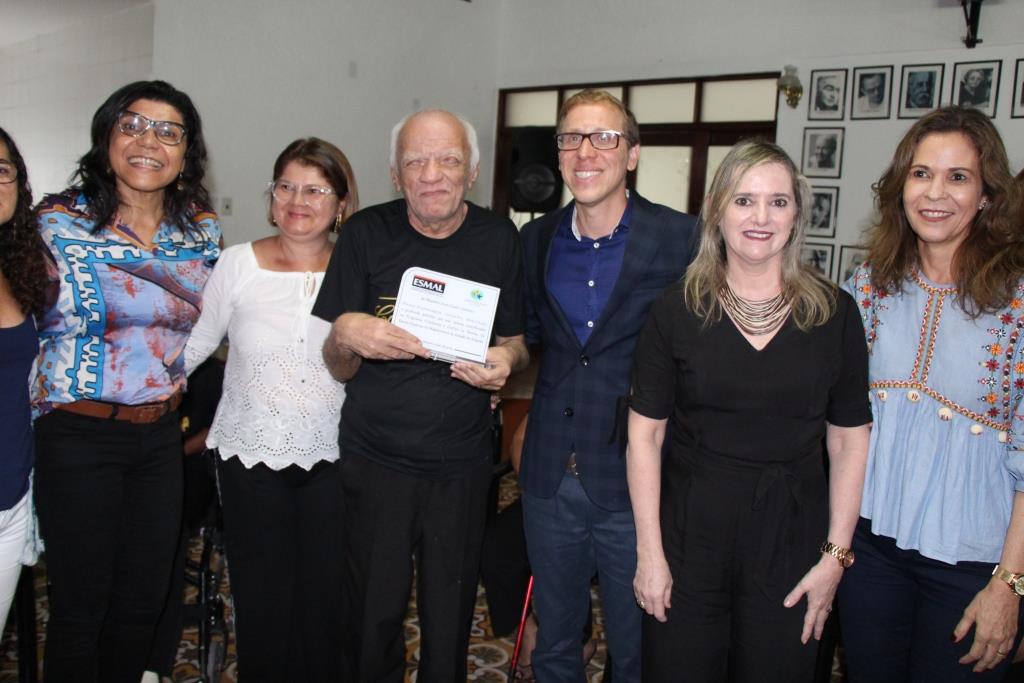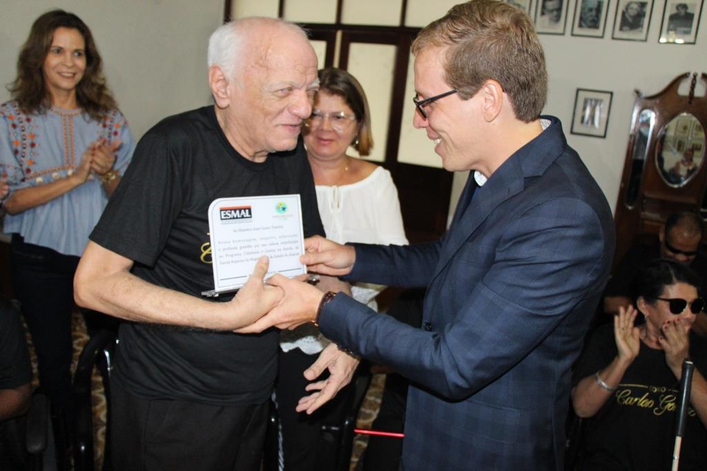 A Escola Superior da Magistratura de Alagoas (Esmal) realizou, na última sexta-feira (26), homenagem de agradecimento ao Mestre José Cícero Tenório, voluntário do projeto Adote um Idoso, promovido pelo Programa Cidadania e Justiça na Escola (PCJE). Cerca de 12 idosos do Abrigo São Vicente de Paulo visitaram a sede da Escola para a homenagem, além de alunos com deficiência visual da Escola Estadual Ciro Acioly, convidados e servidores.