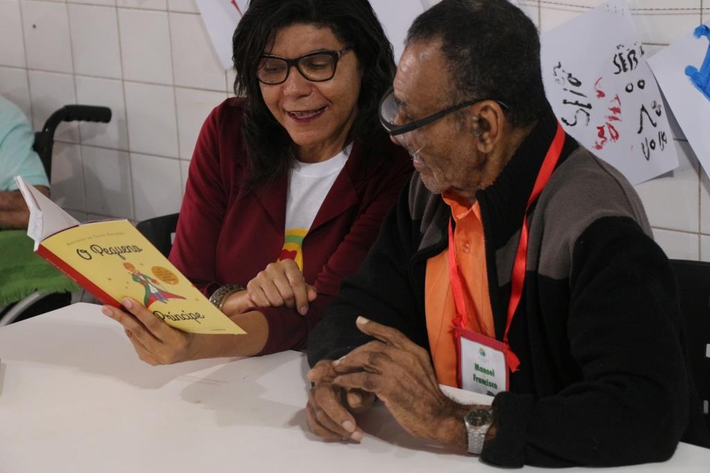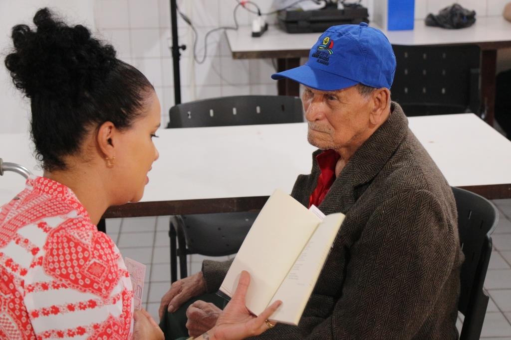 A biblioteca da Esmal também participou do encontro com a leitura de trechos de livros para os idosos, parte do projeto “Do Direito à Literatura”, que tem como objetivo fomentar o acesso à literatura e estimular o hábito da leitura. Segundo Mirian Alves, diretora da biblioteca da Esmal, a ideia é levar uma biblioteca itinerante para uma instituição diferente em cada mês.