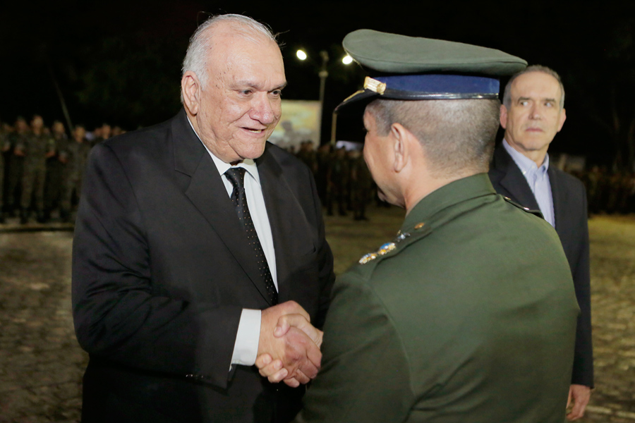 Juiz Rafael Casado, comandante Cláudio Gadelha e o desembargador José Carlos Malta durante a solenidade. Foto: Adeildo Lobo