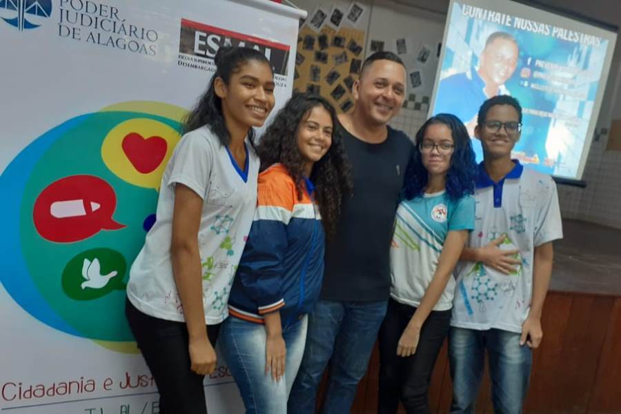 A Escola Superior da Magistratura de Alagoas (Esmal), por meio do Programa Cidadania e Justiça na Escola (PCJE), realizou, nessa quarta-feira (18), palestra com o tema “Drogas: como podem afetar a nossa vida”, para estudantes do 1° ano da Escola Estadual Theonilo Gama, no bairro Jacintinho.
