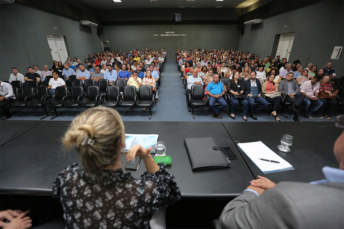 Corregedor dialoga com oficiais de cartórios, na Escola Superior da Magistratura de Alagoas. Foto: Itawi Albuquerque