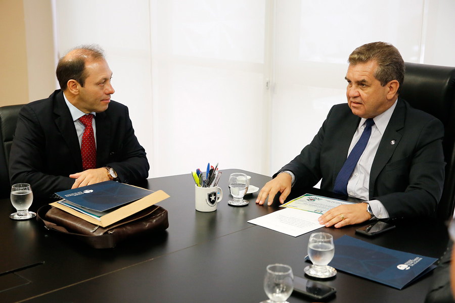 Desembargador Washington Luiz, decano do TJAL, recebeu o presidente do TJAP, João Guilherme. Foto: Caio Loureiro.