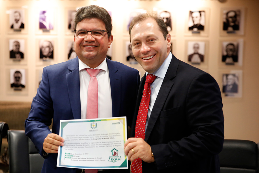 Após assistência do Tribunal de Justiça de Alagoas (TJAL), o TJ do Amapá vai implantar o programa Moradia Legal, no próximo dia 2 de dezembro. O desembargador Washington Luiz Damasceno Freitas recebeu o presidente do TJAP, João Guilherme Lages Mendes, nesta segunda-feira (25), em uma visita de agradecimento.