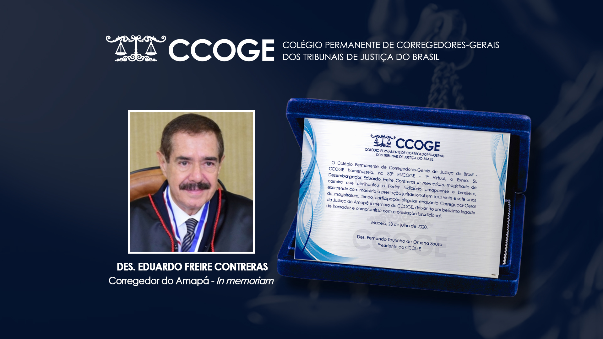 Na oportunidade, o presidente do Colégio Permanente de Corregedores-Gerais dos Tribunais de Justiça do Brasil (Encoge), desembargador Fernando Tourinho, prestou homenagem ao desembargador Eduardo Freire Contreras, corregedor-geral do Tribunal de Justiça do Amapá, que faleceu no dia 26 de maio deste ano, e destacou a presteza jurisdicional ao Judiciário daquele Estado.