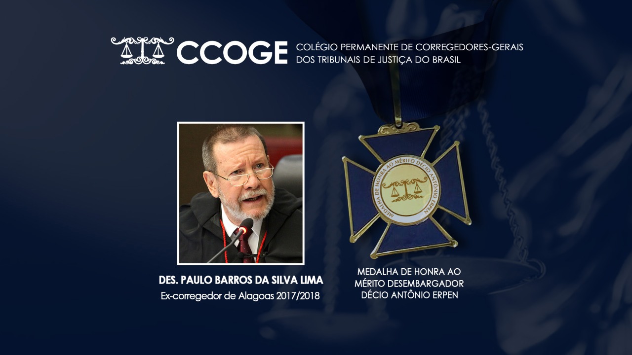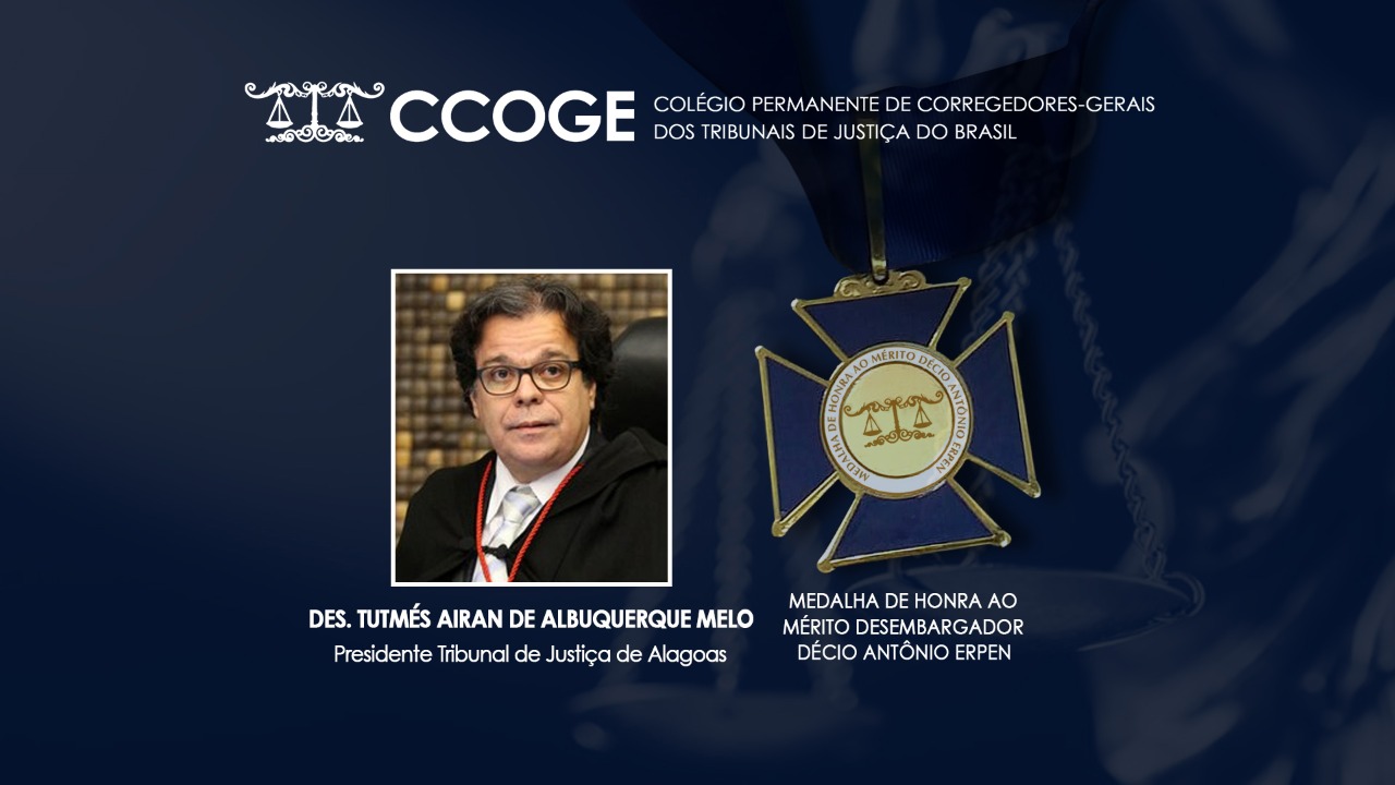 Magistrados que se destacaram no cenário nacional pelos notáveis serviços prestados à Justiça brasileira foram homenageados, de maneira remota, com a medalha Desembargador Décio Antônio Erpen, na manhã desta quinta-feira (23), durante o 83º Encontro do Colégio Permanente dos Corregedores Gerais dos Tribunais de Justiça do Brasil (Encoge). Representando todos os agraciados, a honraria foi entregue de forma presencial ao presidente do Tribunal de Justiça de Alagoas (TJAL), desembargador Tutmés Airan.