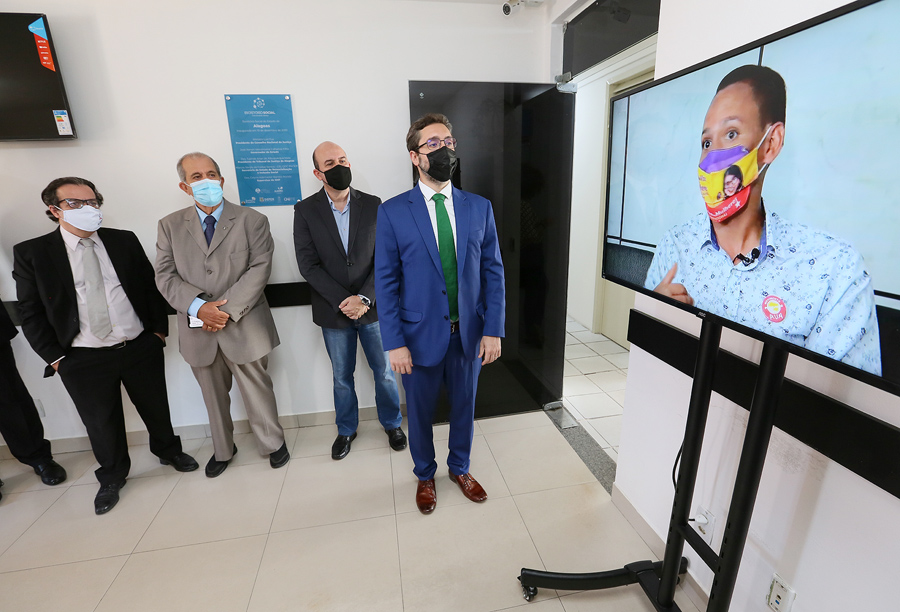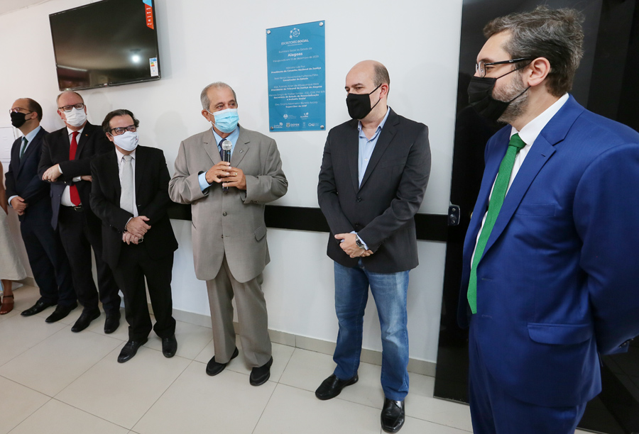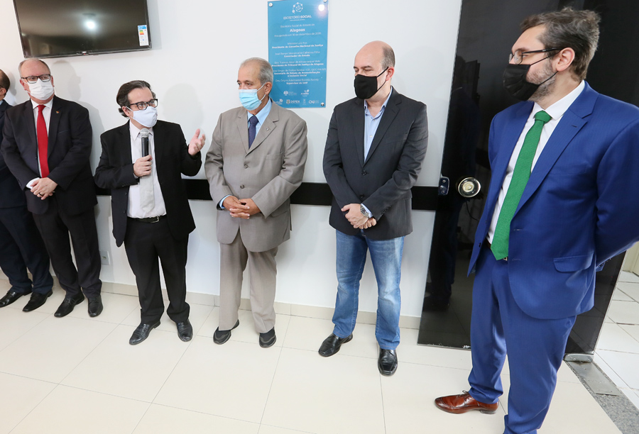 Representantes do TJAL, do CNJ e da Seris descerraram a placa de inauguração do Escritório Social. Foto: Caio Loureiro