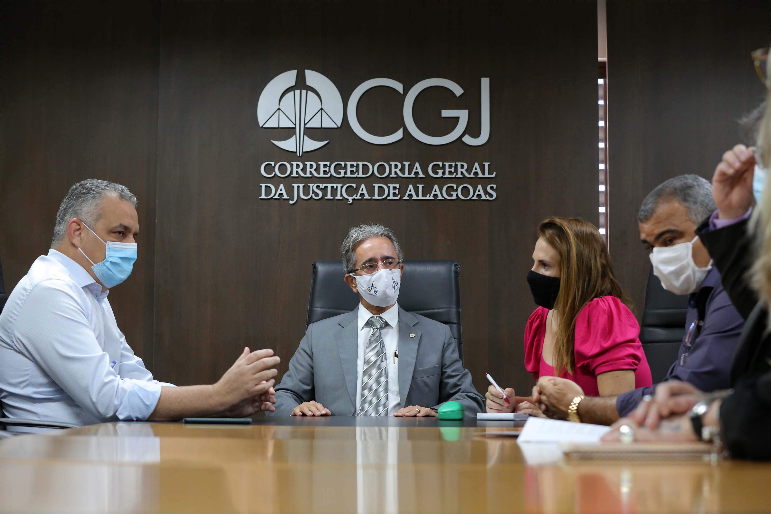 Também participaram da reunião a Magistrada auxiliar da Corregedoria, Renata Malafaia Vianna, a Gerente do Centro de Monitoramento da Seris, Luciana Lupatelli, e o Coronel Elias Oliveira.