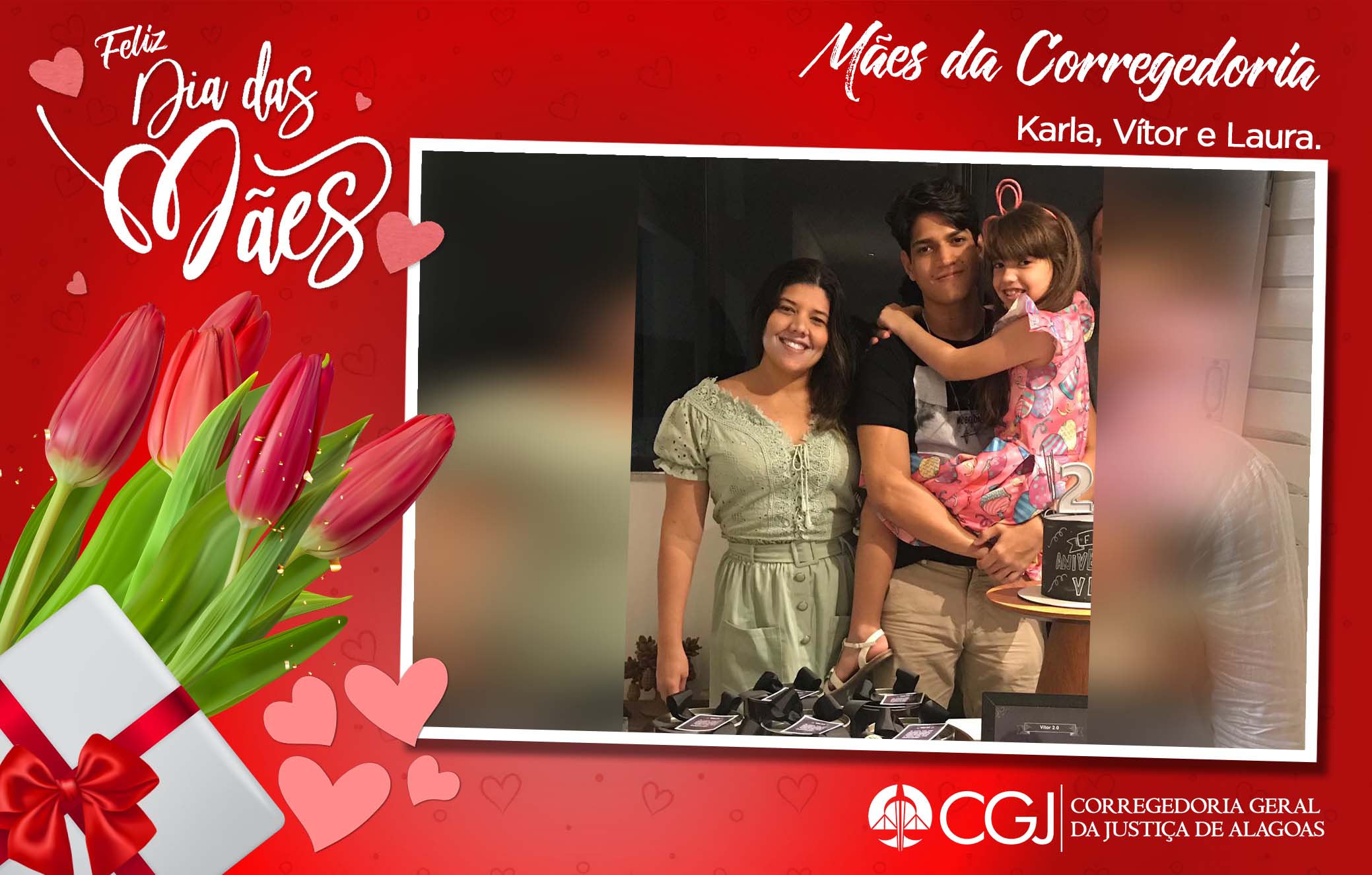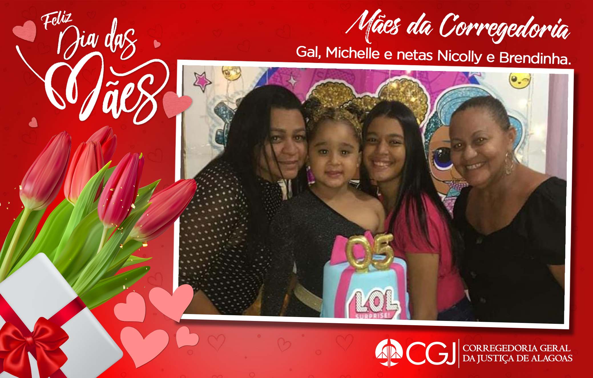 Em comemoração ao Dia das Mães, celebrado oficialmente no próximo domingo, dia 9 de maio, Magistradas, servidoras e terceirizadas que atuam na Corregedoria-Geral da Justiça de Alagoas (CGJ/AL) receberam uma bela homenagem no final do expediente desta sexta-feira (7). Na oportunidade, o Corregedor-Geral da Justiça de Alagoas, Desembargador Fábio José Bittencourt Araújo, distribuiu brindes alusivos à data e destacou a importância da celebração.