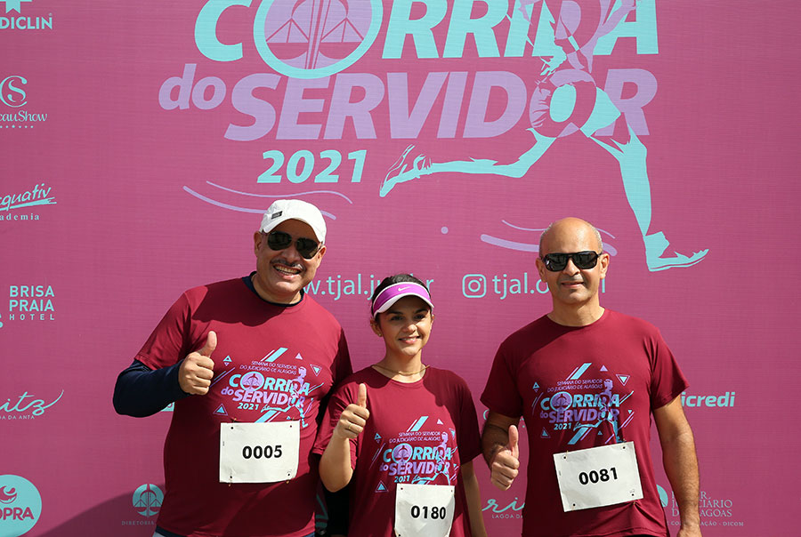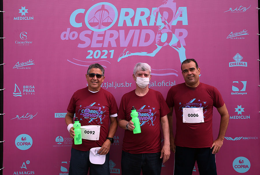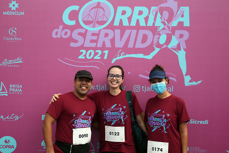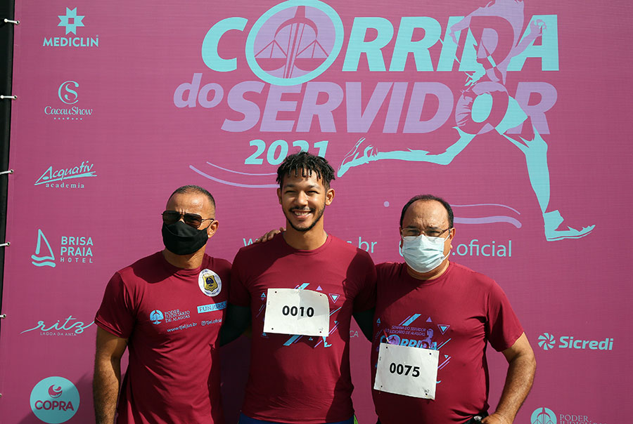 Os servidores José Baptista Neto (Diretoria de TI), Fabrício Lúcio (Turma Recursal de Arapiraca) e Sérgio Cândido (Assessoria Militar) foram os vencedores, na categoria masculina, da IV Corrida do Servidor, realizada neste sábado (23), no Quartel do Exército, em Maceió. Já na categoria feminina, subiram ao pódio Luana Mariano (12º Juizado), Ana Paula Barros (Escola da Magistratura) e Marina Aguiar (7º Juizado).