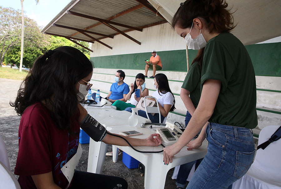 Antes da corrida, equipe da Mediclin aferiu a pressão dos participantes. Houve ainda alongamento conduzido por treinadora da Academia Acquativ.