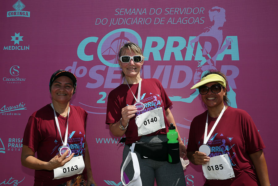 Os primeiros colocados em cada categoria ganharam duas diárias no Hotel Brisa Praia ou Ritz Lagoa da Anta, em Maceió, com direito a acompanhante. Os segundos colocados ganharam uma caixa de som JBL, e os terceiros colocados, uma cesta de produtos da Cacau Show. As premiações serão entregues na cerimônia de encerramento da Semana do Servidor, na próxima quarta (27), às 10h, no Pleno do Tribunal de Justiça. Os demais participantes da corrida receberam medalhas.