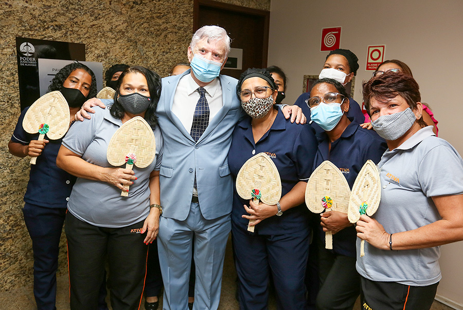 O presidente do Tribunal de Justiça de Alagoas, Klever Loureiro, conduziu uma solenidade no hall de entrada da Corte, nesta segunda-feira (7), em celebração antecipada ao Dia Internacional da Mulher (8 de março). O desembargador fez um discurso de homenagem e entregou brindes para as servidoras presentes.