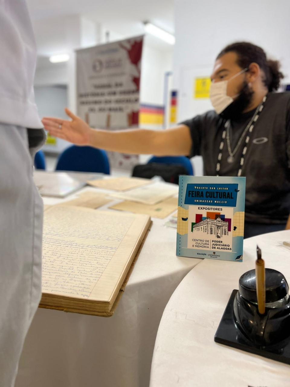O Centro de Cultura e Memória do Poder Judiciário de Alagoas expôs objetos históricos na feira cultural realizada pela Uninassau Maceió, na segunda-feira (25). Com o estande mais visitado do evento, o CCM exibiu ao público itens como recibo de compra e venda de escravos e um exemplar do primeiro jornal de Alagoas.
