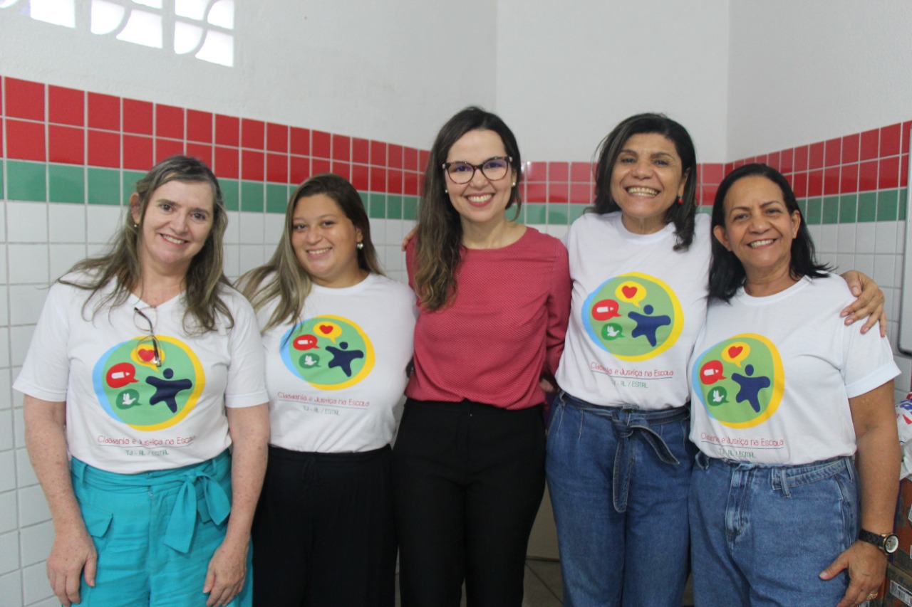 Juíza Lívia Mattos ao lado da equipe do PCJE e servidora da Escola Pompeu Sarmento