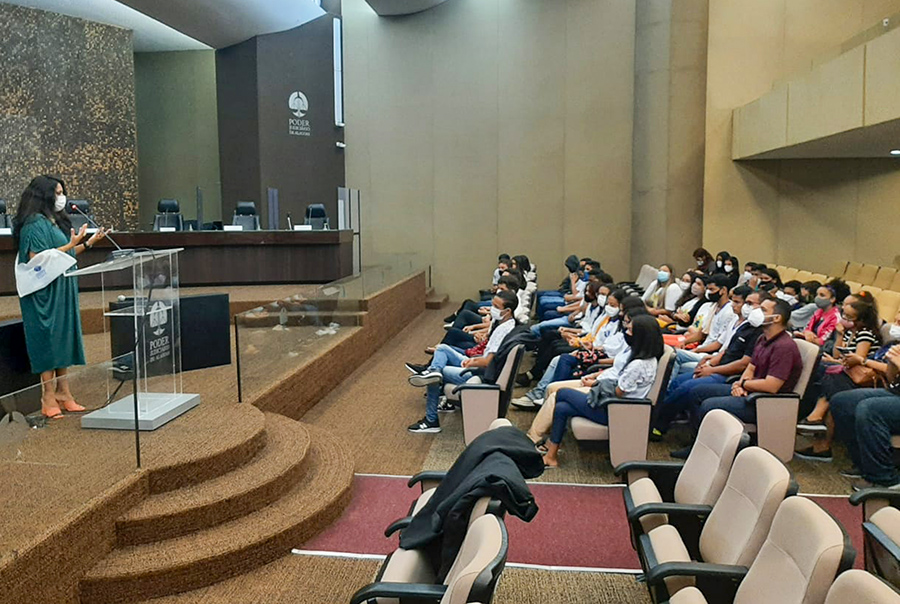 Margarida Melo palestra pra estudantes no Plenário do Tribunal de Justiça.