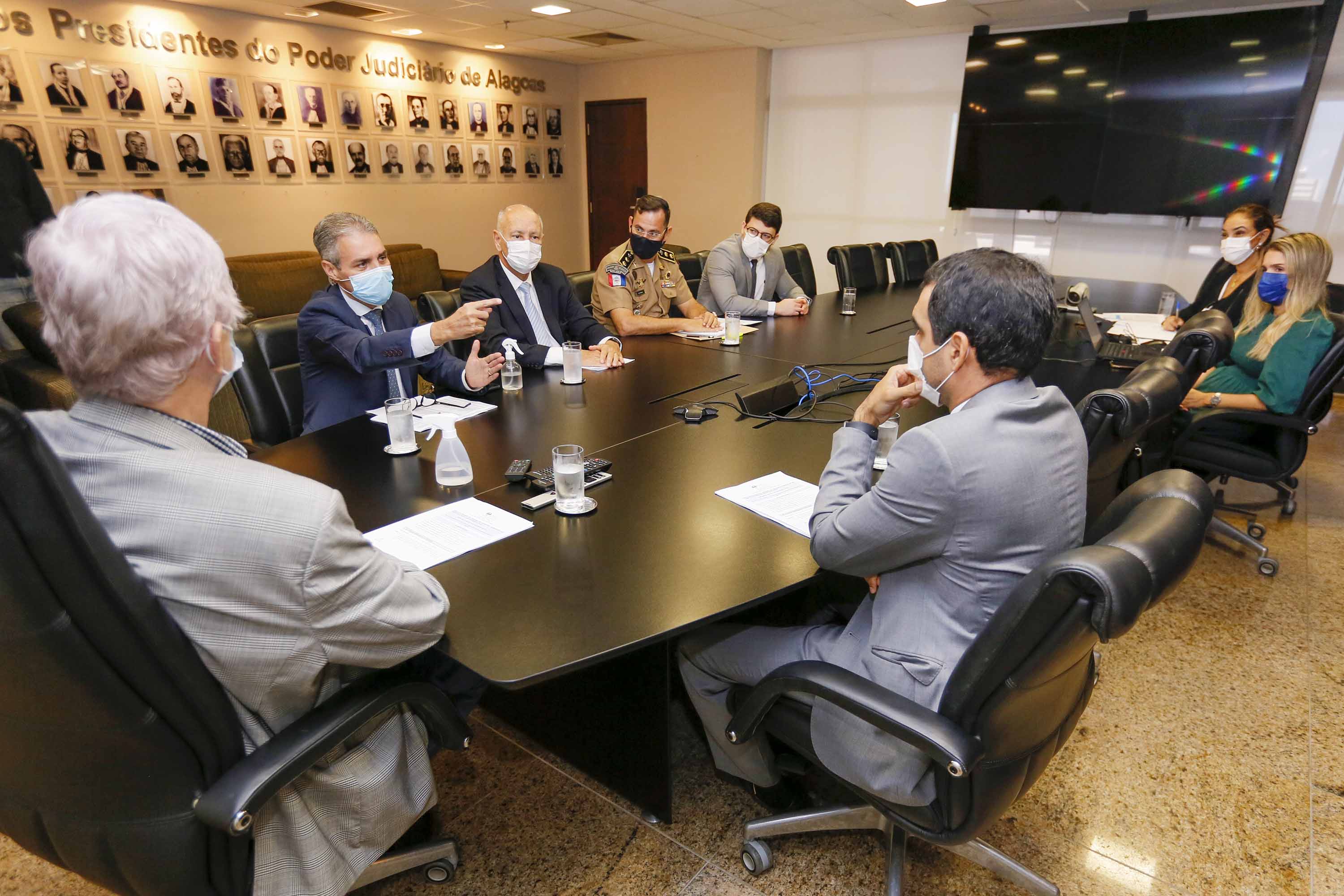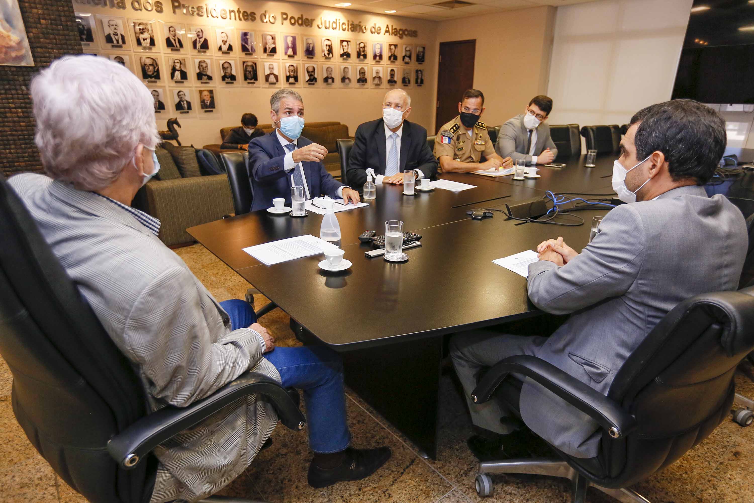 Participaram da reunião os juízes Maurício Breda, Diego Araújo Dantas e Rodolfo Osório Gatto Herrmann, além do coronel Mário Palmeira, chefe da Assessoria Militar do TJAL.