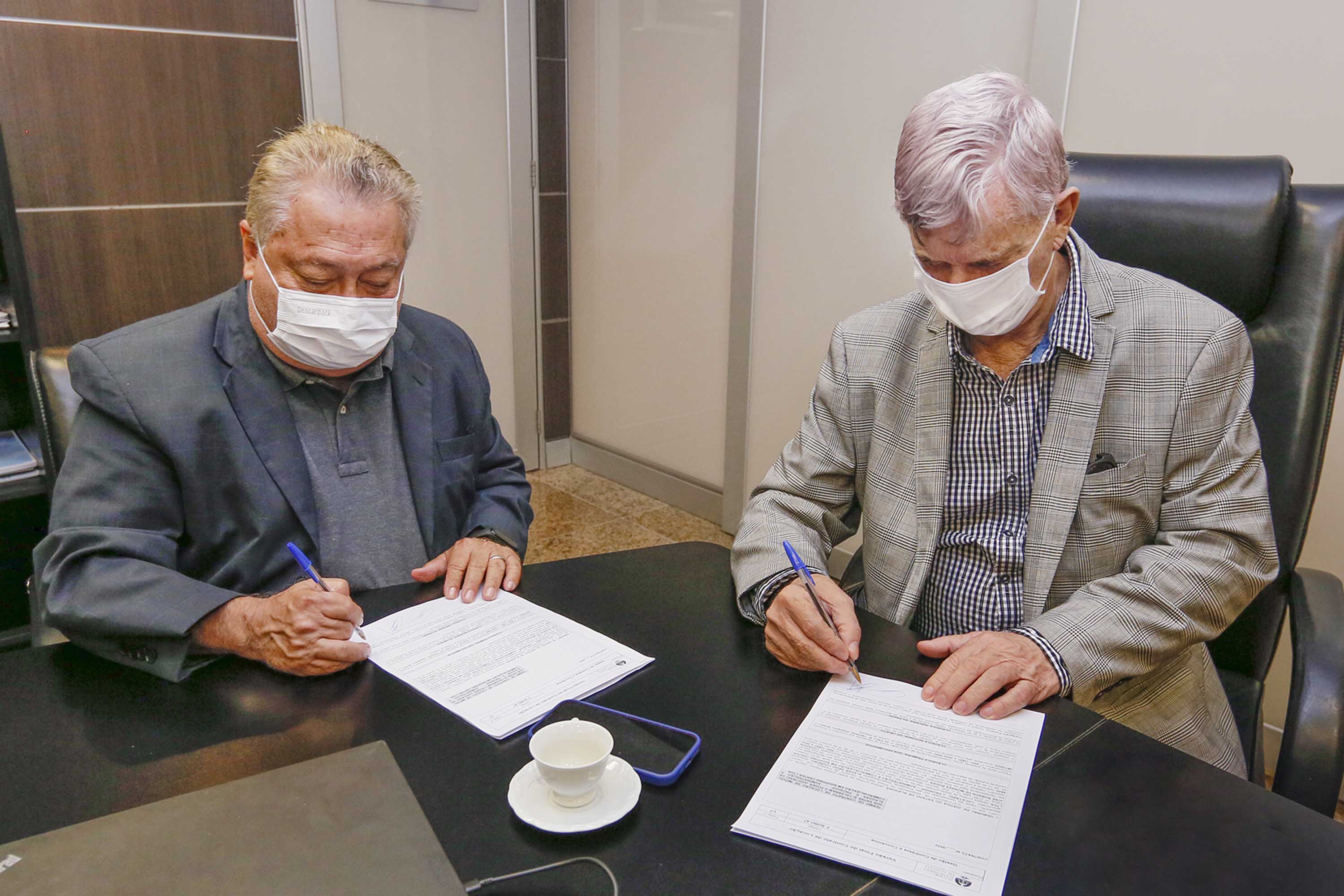 Empresário Robson Rodas e presidente Klever Loureiro assinam contrato. Foto: Adeildo Lobo.