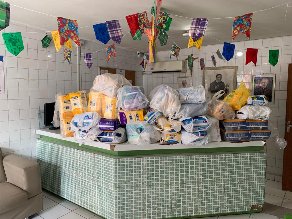 Donativos entregues pela equipe do PCJE ao Lar São Vicente de Paulo. Imagem cedida pelo PCJE.