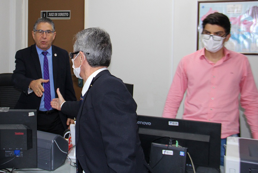 Acompanhado pelos Magistrados Auxiliares da Corregedoria, Dr. Anderson Santos dos Passos e Dr. José Miranda Santos Júnior, o Des. Fábio Bittencourt dialogou com o Juiz de Direito André Gêda Peixoto Melo e com servidores, sobre a normalidade do atendimento aos jurisdicionados. Após, também visitou o Cartório de Registro Civil e Notas da cidade, com o intuito de analisar documentos e verificar se a estrutura atende ao que preconiza o Conselho Nacional de Justiça (CNJ).
