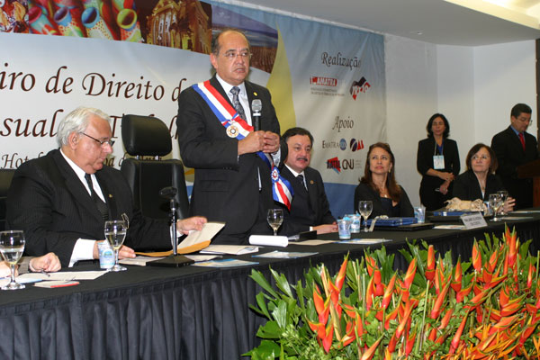 O ministro presidente do Conselho Nacional de Justiça (CNJ), Gilmar Mendes, foi agraciado, na última sexta-feira (11) com a Medalha da Ordem do Mérito Ministro Silvério Fernandes de Araújo Jorge, comenda concedida pelo Tribunal Regional do Trabalho da 19ª Região. A homenagem marcou o encerramento do V Congresso Brasileiro de Direito do Trabalho, realizado no Hotel Ritz Lagoa da Anta, em Cruz das Almas.