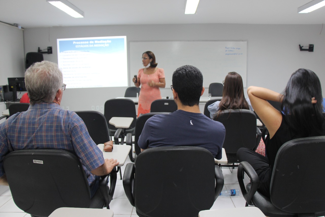 Ao longo da formação, os participantes assistiram a aulas expositivas e dialogadas, com uso de metodologias ativas de aprendizagem. Entre as temáticas abordadas, estavam os princípios norteadores da mediação, a lei de mediação e os direitos e deveres do mediador.