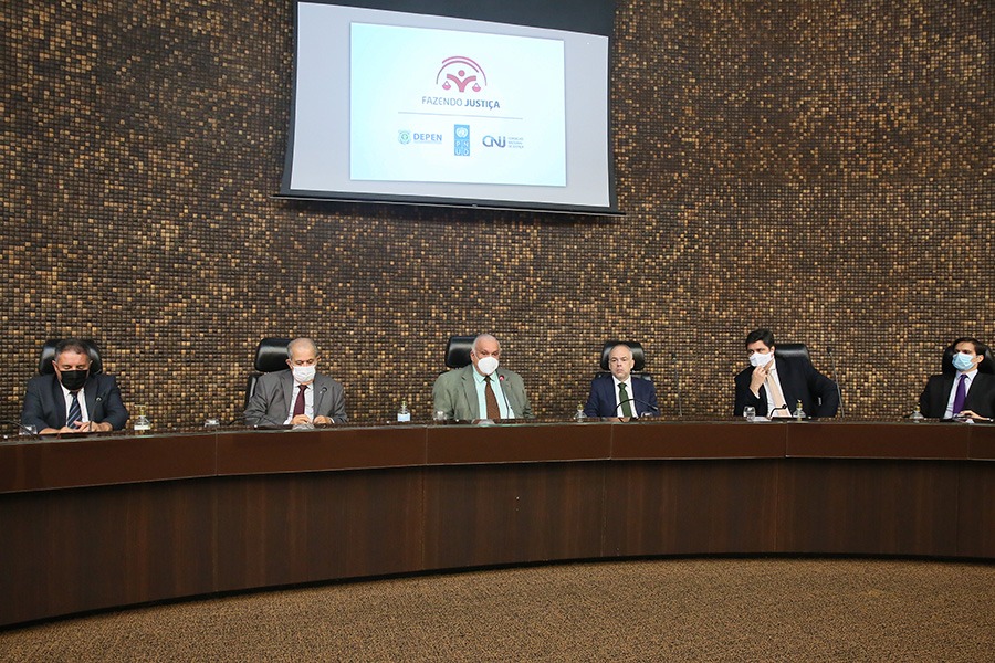 O evento contou com a presença de autoridades envolvidas na ação nacional: desembargador Celyrio Adamastor, supervisor do Grupo de Monitoramento e Fiscalização do Sistema Carcerário; coronel Edenilzo Pereira de Amorim, diretor administrativo da Seris; Márcio Roberto Tenório de Albuquerque, procurador-geral de Justiça; João Felipe Menezes Lopes, juiz auxiliar da Presidência do DMF/CNJ; Iuri Camargo Kisovec, assessor-chefe da Gestão de Identificação do TSE; Raíssa Araújo, coordenadora de assistência religiosa, jurídica e social do Departamento Penitenciário Nacional (Depen); José Anízio de Amorim, diretor-presidente do Instituto de Identificação de Alagoas; juiz João Paulo Martins, coordenador da Central de Audiências de Custódia da Capital; Ana Pereira, coordenadora estadual do programa Fazendo Justiça; e André Sampaio, consultor de custódia do programa Fazendo Justiça.