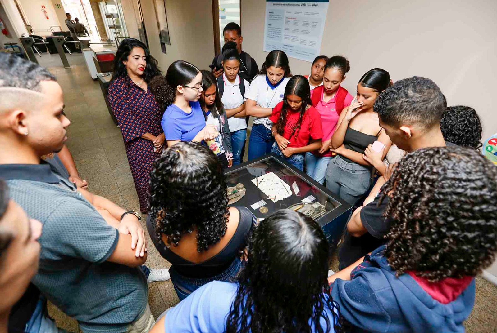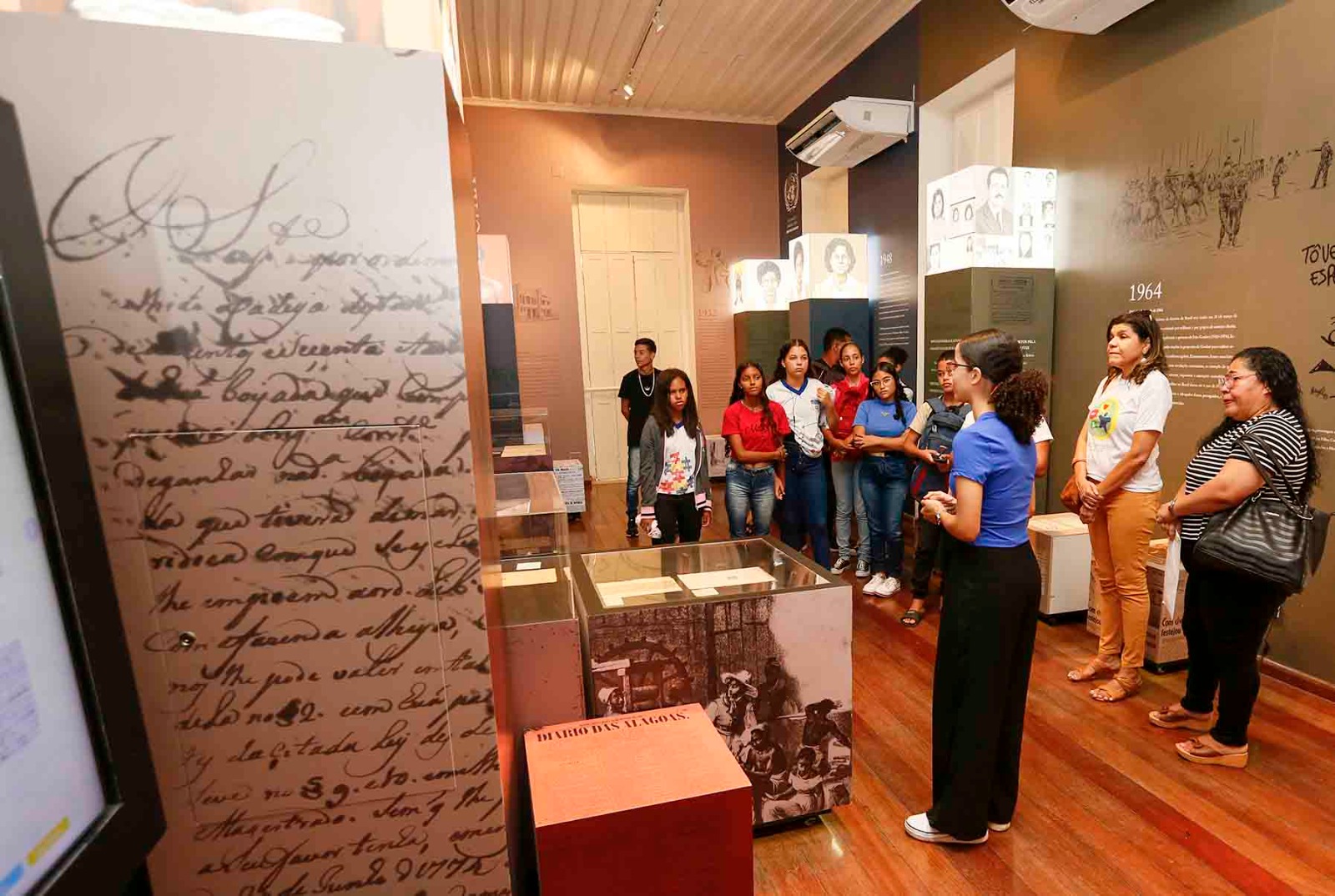 Cerca de 30 alunos da Escola Estadual Anaias de Lima participaram de uma visita guiada ao Centro de Cultura e Memória do Poder Judiciário de Alagoas (CCM) e à exposição “A Justiça e o Tempo”, nesta terça-feira (9).