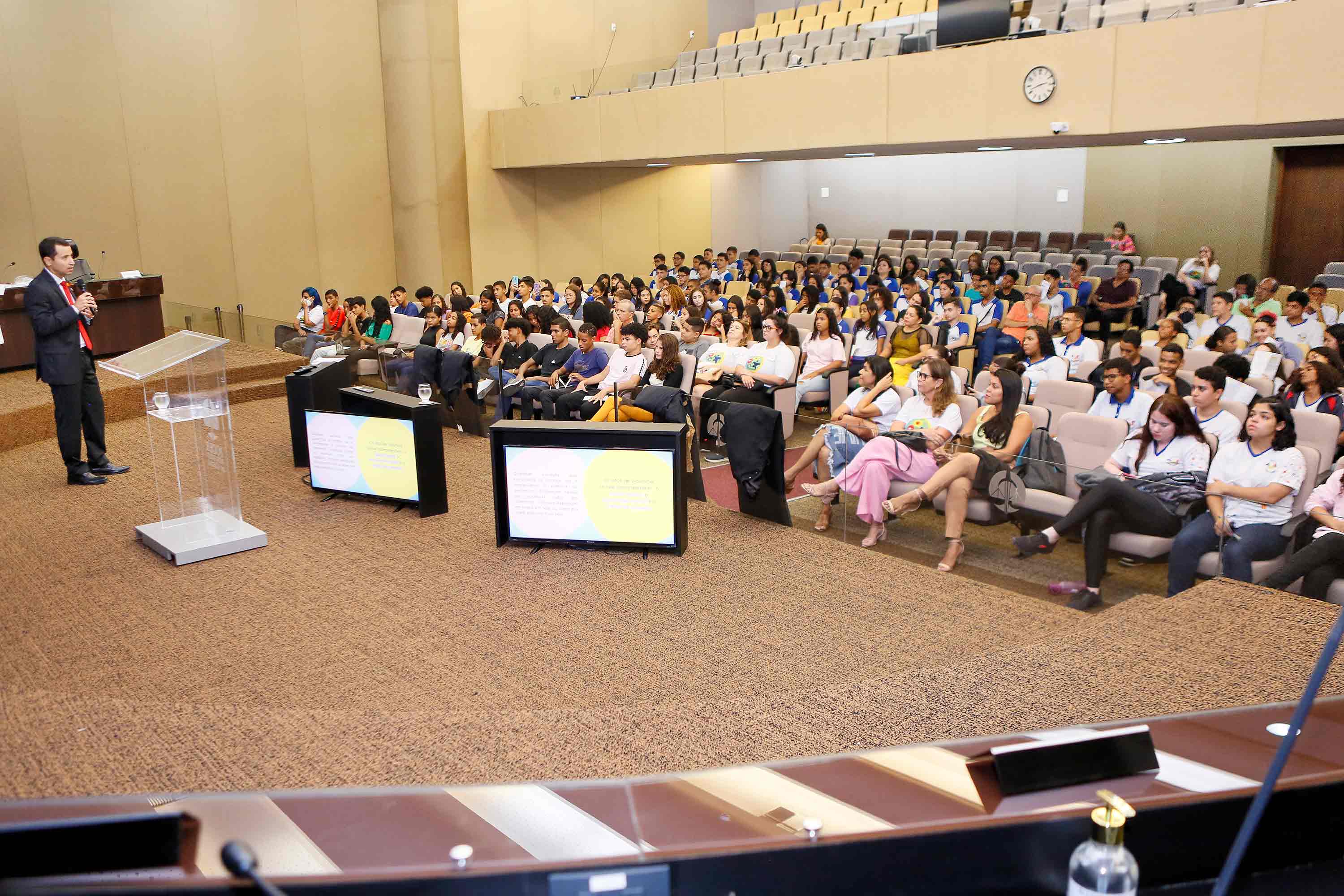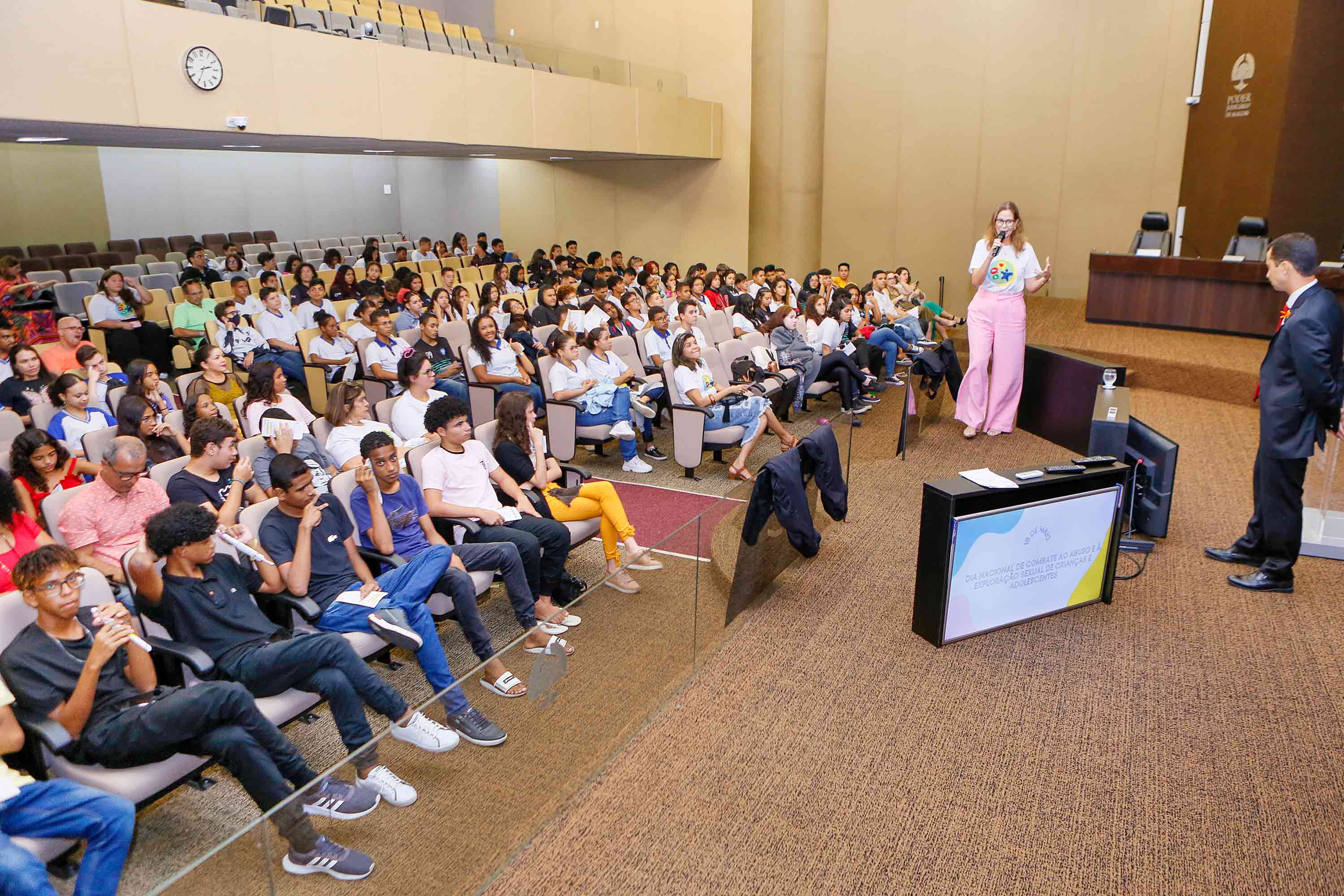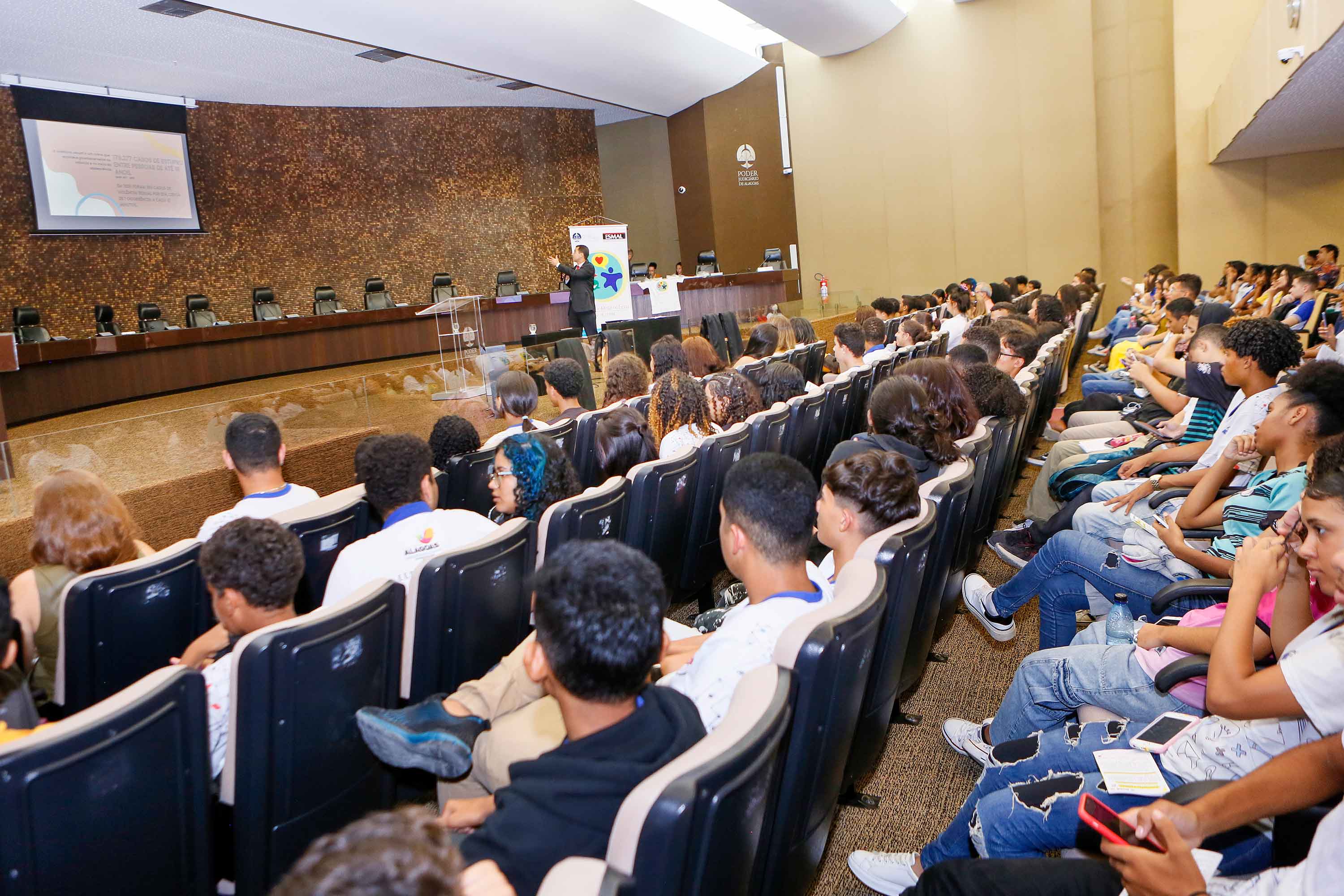 No Dia Nacional de Combate ao Abuso e à Exploração Sexual de Crianças e Adolescentes, celebrado nesta quinta (18), cerca de 300 alunos da rede pública estadual e municipal assistiram à palestra "Combater a violência sexual é papel de todos nós!", ministrada pelo juiz Ygor Figueiredo, no Pleno do Tribunal de Justiça de Alagoas (TJAL). A ação é de iniciativa do Programa Cidadania e Justiça na Escola (PCJE) da Esmal.