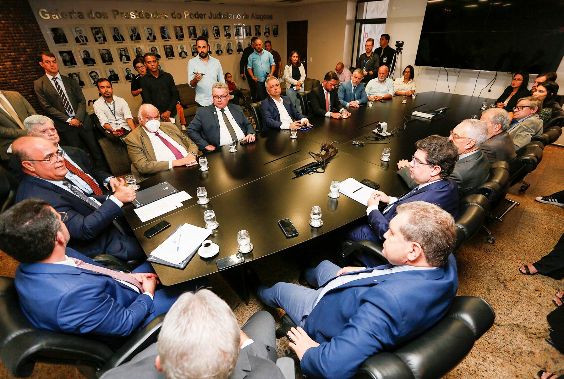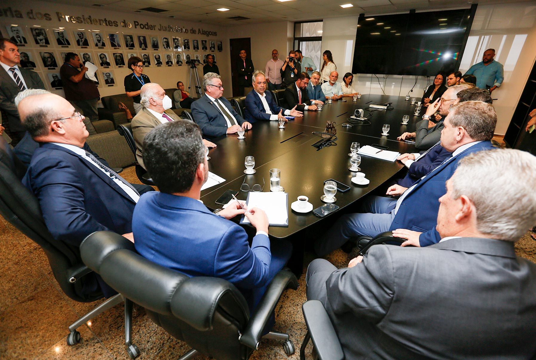 A assinatura do termo de cooperação, na Presidência do TJAL, contou com a presença de desembargadores, representantes do Executivo, do Legislativo estadual e dos demais órgãos participantes.