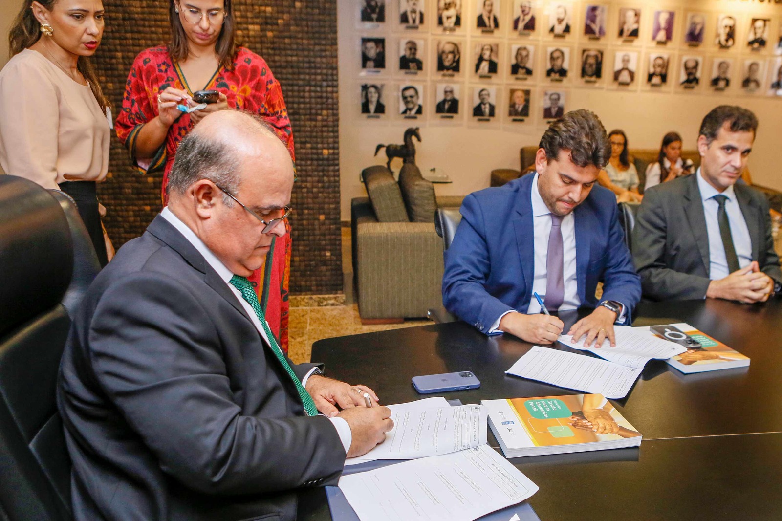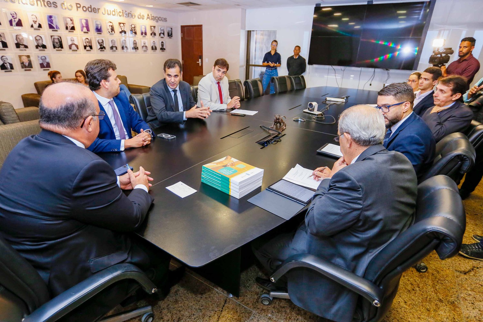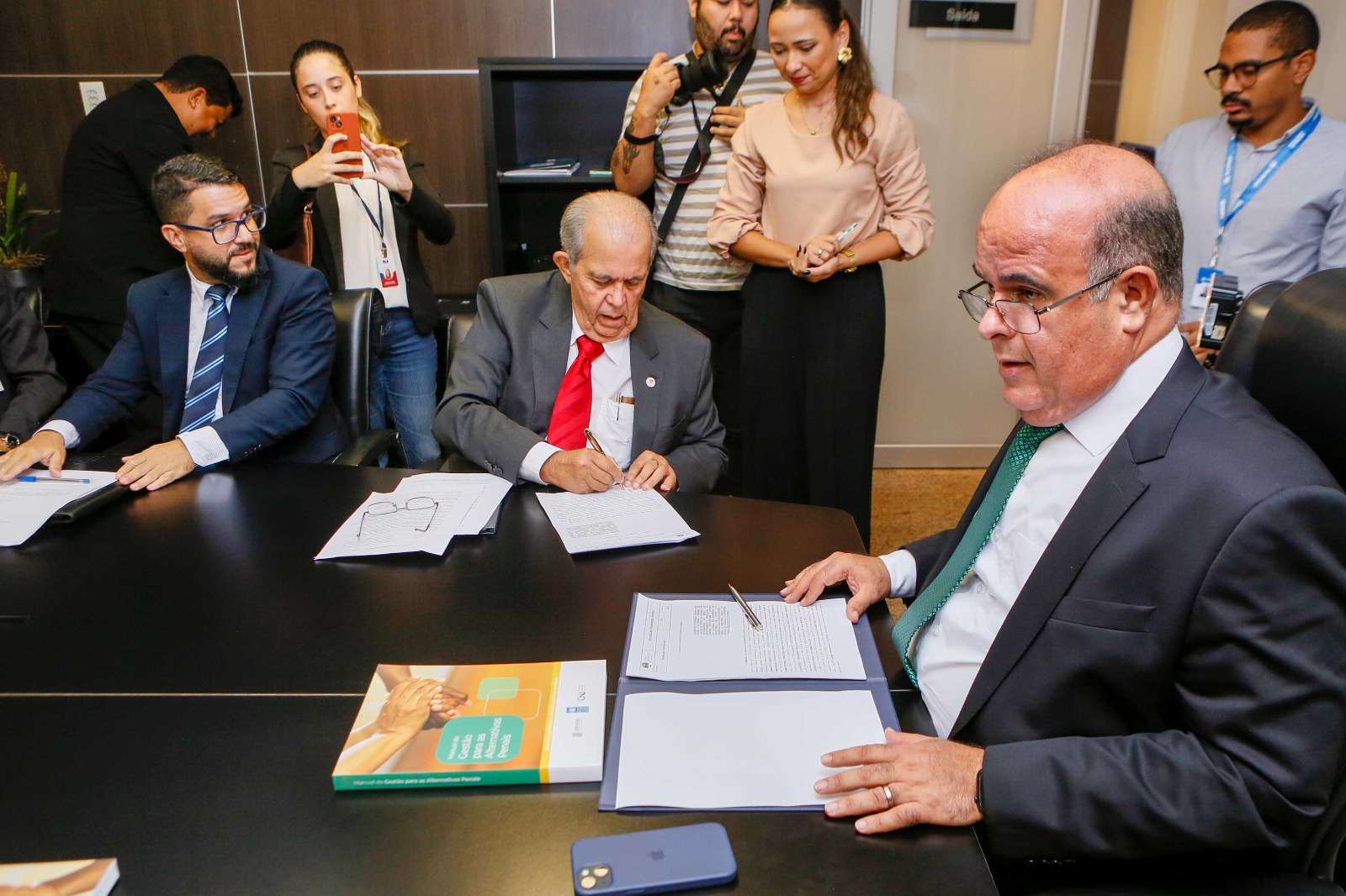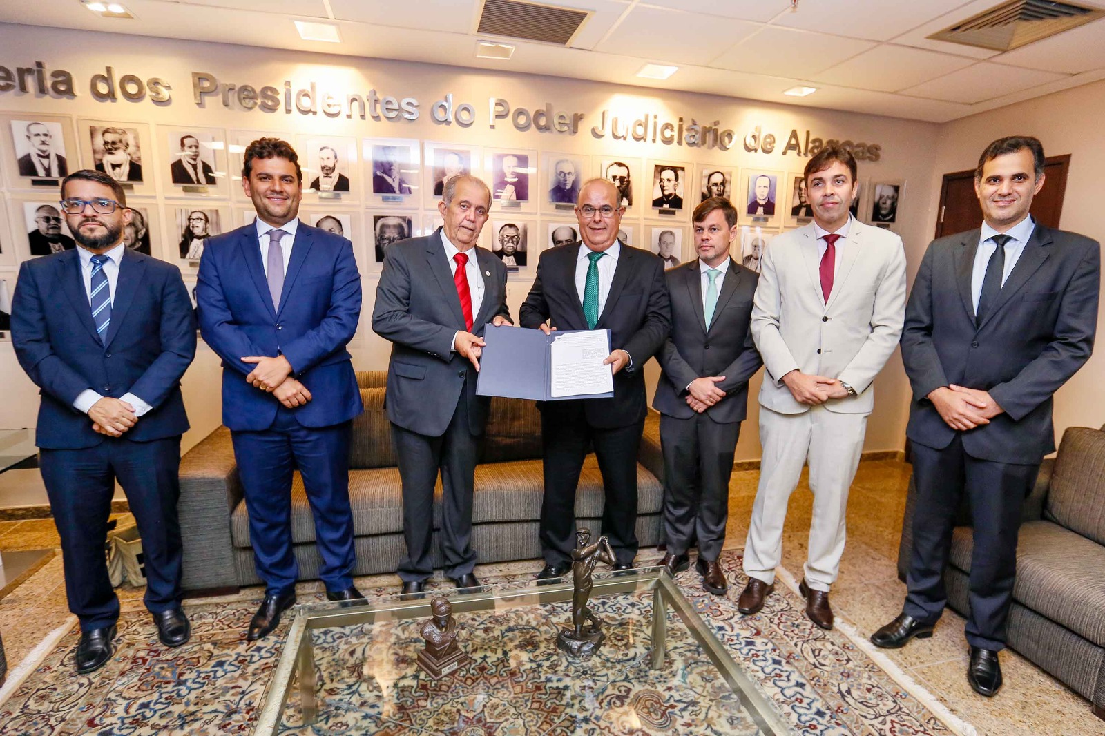 Participaram da assinatura o desembargador Celyrio Adamastor, supervisor do Grupo de Monitoramento e Fiscalização do Sistema Carcerário (GMF/AL); promotor de Justiça Humberto Bulhões, representando o Ministério Público de Alagoas (MPAL); Carlos Eduardo Monteiro, defensor público-geral de Alagoas; João Paulo Martins, juiz auxiliar da Presidência do TJAL; Walter Santos, subdiretor-geral do TJAL; e o presidente da OAB/Alagoas, Vagner Paes.