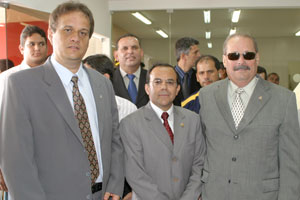 Desembargadores Estácio Gama (presidente), Juarez Marques Luz e Antonio Sapucaia da Silva descerram placa inaugural com o deputado estadual Gilvan Barros