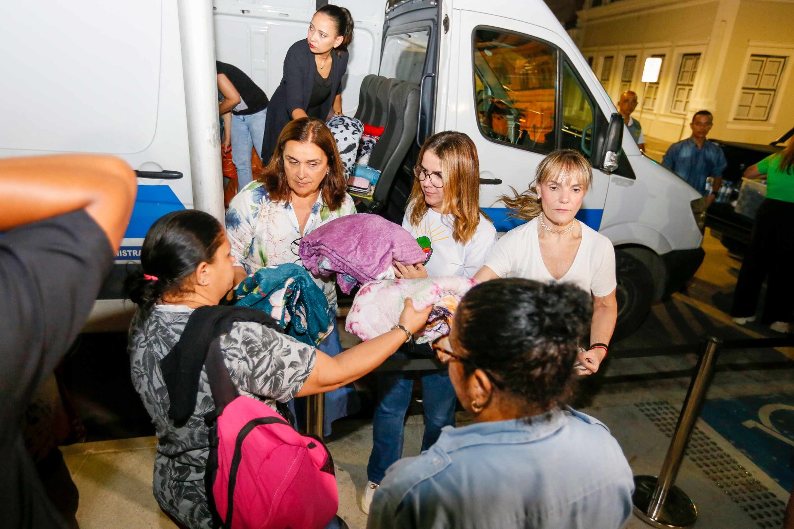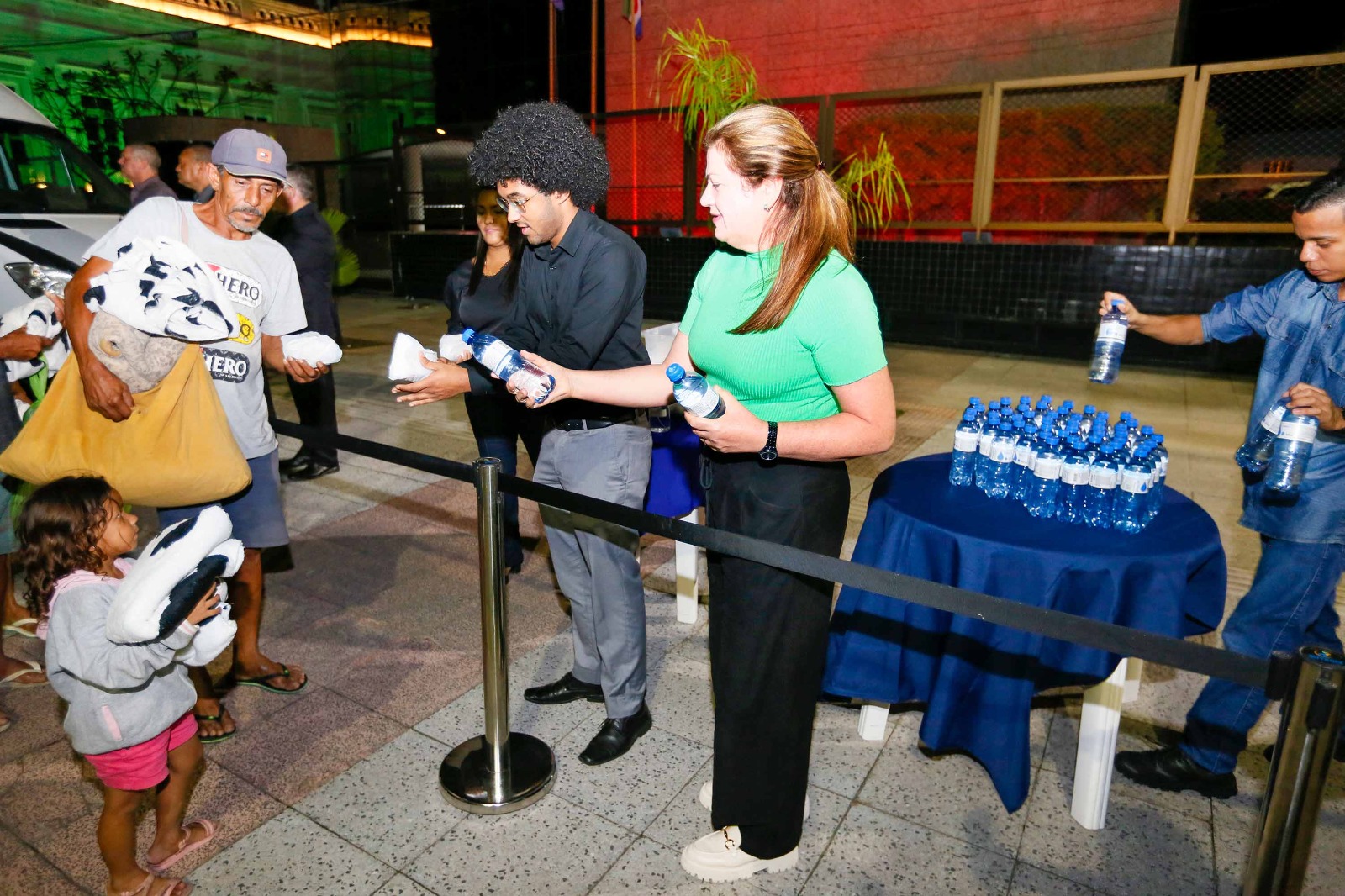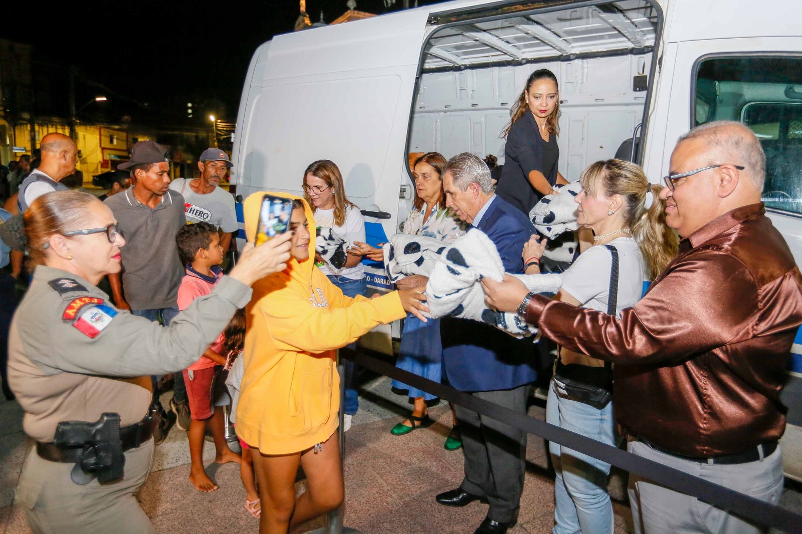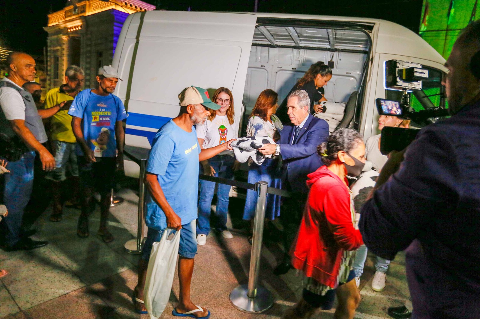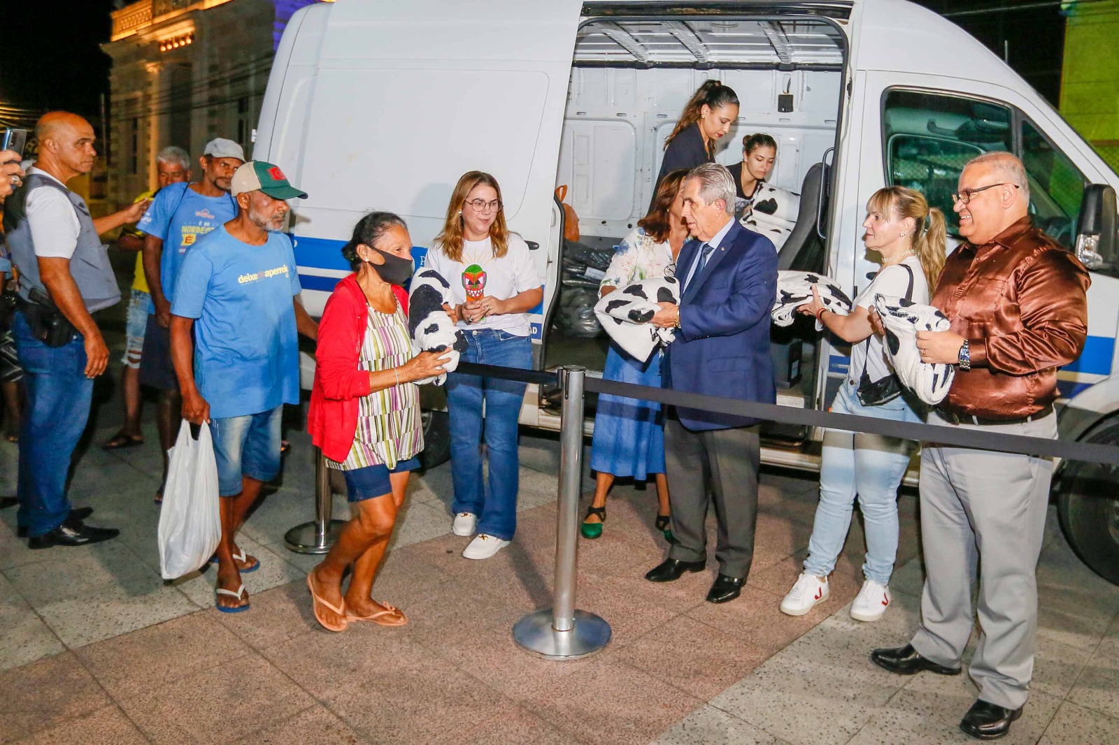 Equipe do TJAL distribuindo cobertores na Praça dos Martírios, no Centro de Maceió. Foto: Adeildo Lobo