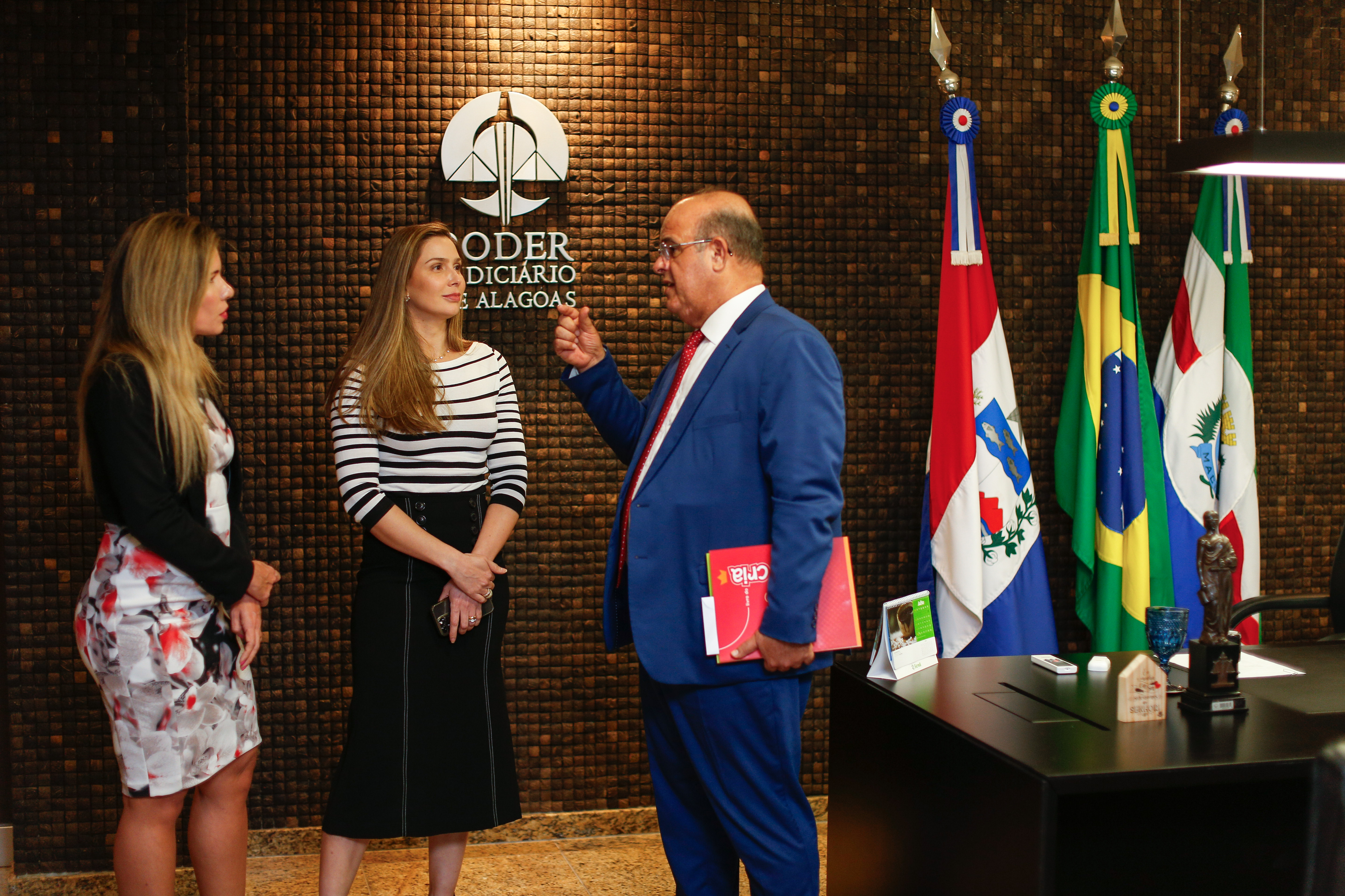 Após a reunião, a magistrada Soraya Maranhão e a conselheira Renata Calheiros estiveram com o presidente do TJAL, desembargador Fernando Tourinho, que manifestou seu interesse em dar mais visibilidade ao tema. Idealizadora do Programa Criança Alagoana (Cria), a conselheira entregou o “Livro do Cria” ao presidente que revela como foi instituído o projeto no estado.